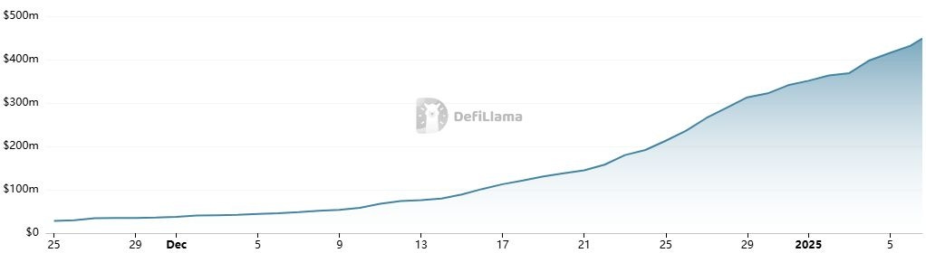 DeFiLlamaによると、分散型ステーブルコインプロトコルResolvは先月急成長を遂げており、TVLは12月1日の3,740万ドルから1月6日には4億4,800万ドルに増加