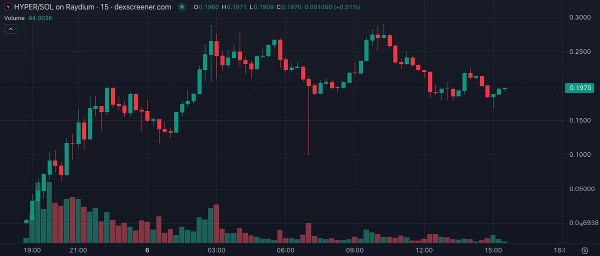 公式トークンHYPERは、時価総額300万ドルでスタートし、24時間以内に100倍近くの2億7500万ドルまで急騰