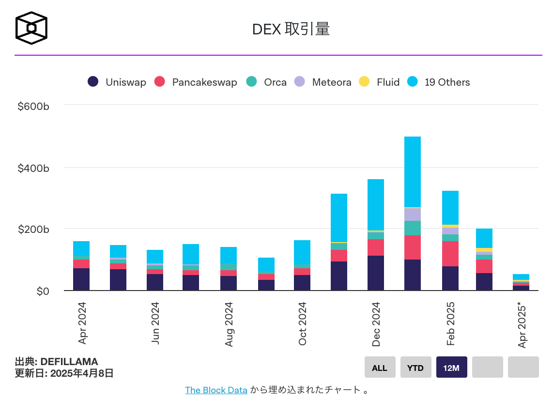 DEX 参加の急激な減少は、暗号通貨業界全体における市場全体の冷え込みと投機的な資本フローの減少と一致