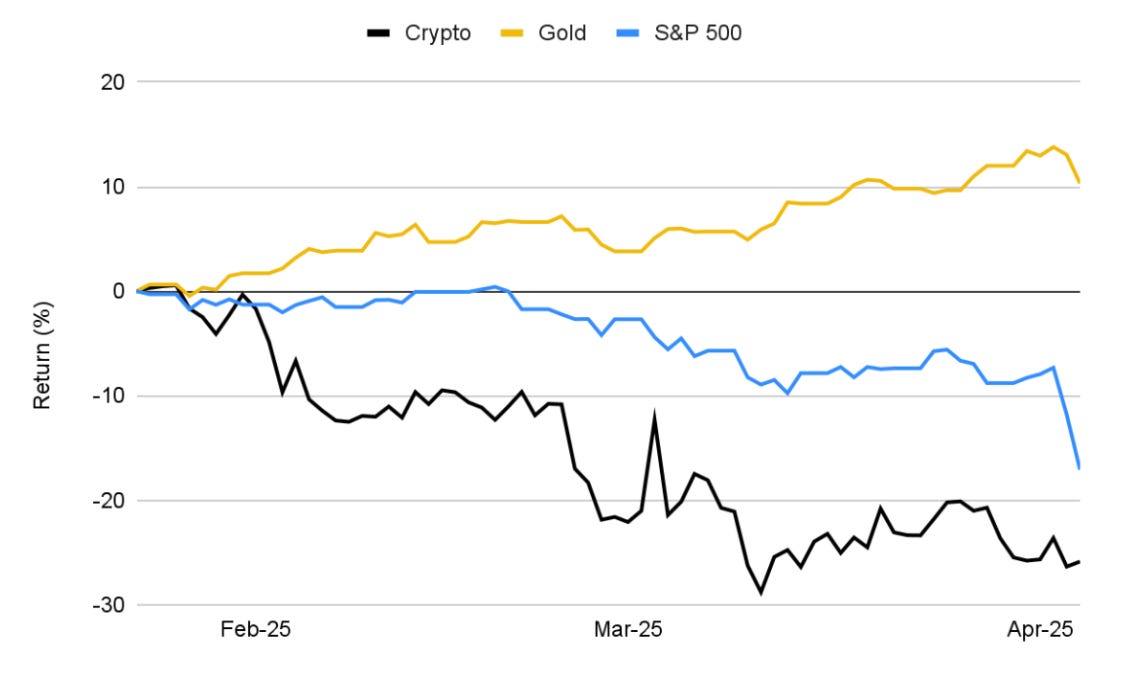 ビットコインの相関性の変化: 関税措置後、ビットコインと株式市場の相関性が高まり、リスク資産としての側面が強調されました。一方、ビットコインと金との相関性は低下し、伝統的な安全資産との違いが浮き彫りになりました。