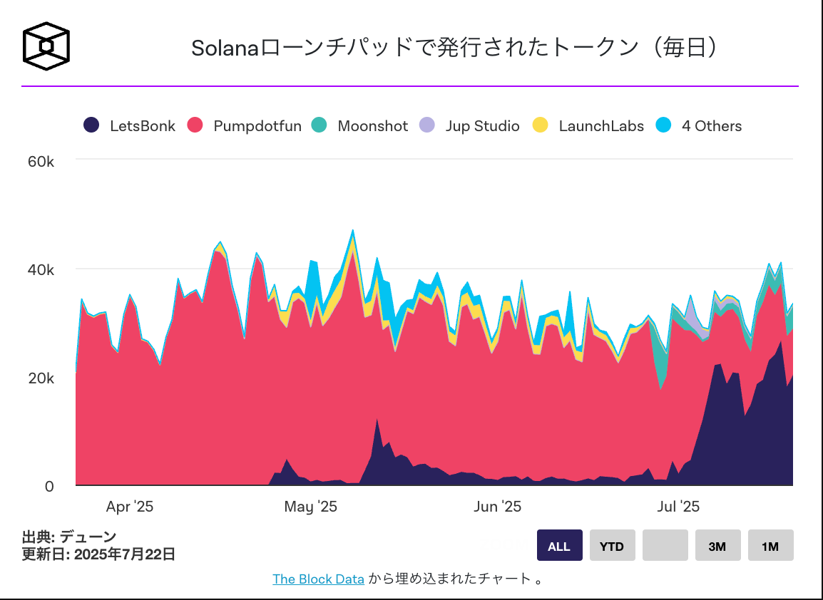 BONKが支援するSolanaベースのトークンローンチパッドであるLetsBonkは先週、合計約15万トークンが発行され、これは前週の13万2000トークンと比較して約14%の増加となった