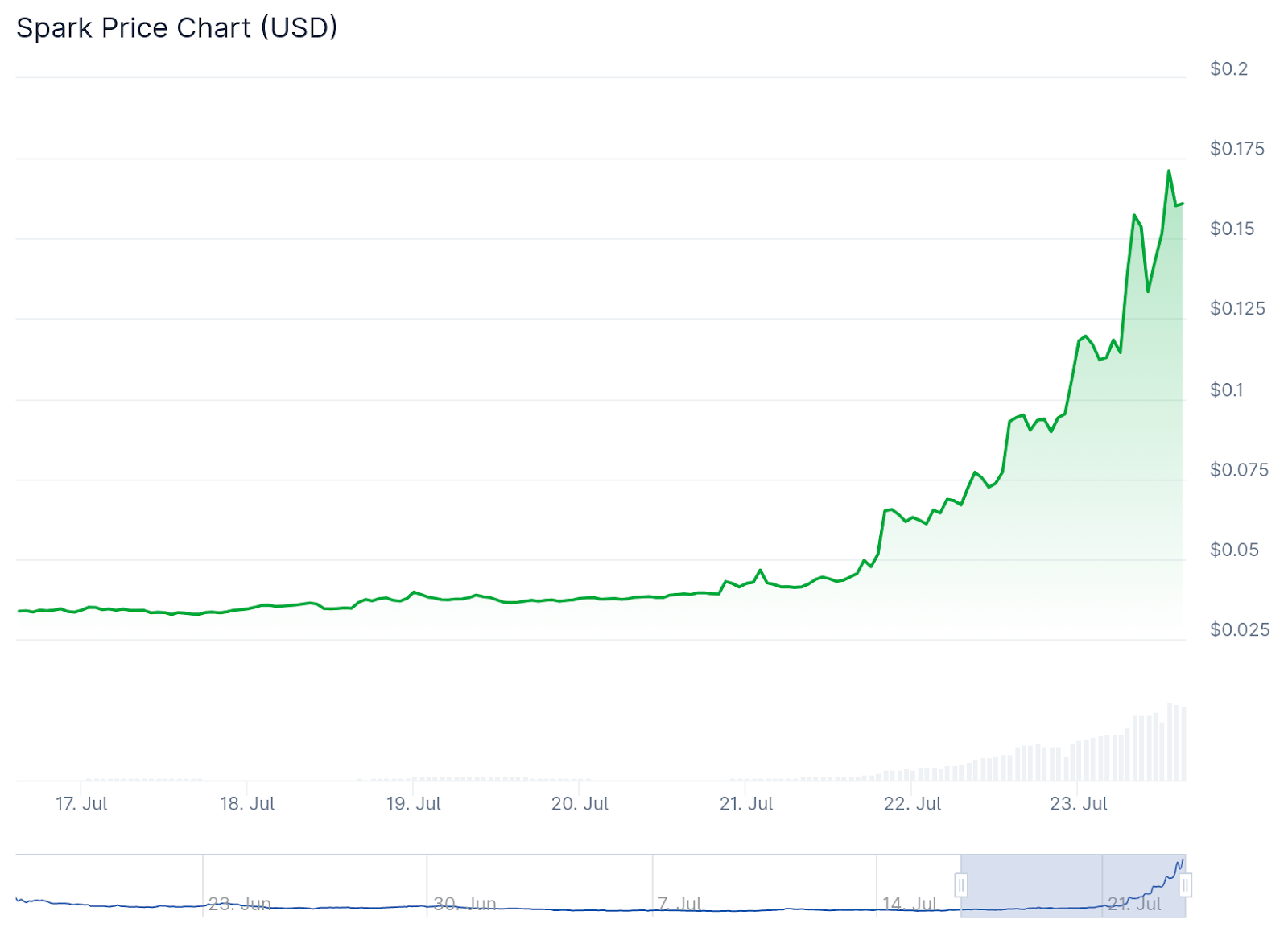 SPKは7月23日に史上最高値を更新し、一時0.18ドル、完全希薄化後時価総額(FDV)18億ドルまで上昇