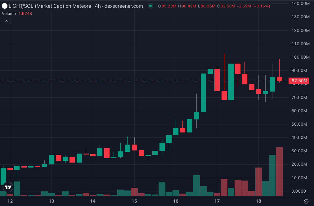 Heaven DEXのネイティブトークンであるLIGHTは、8月12日に時価総額約1,500万ドルで発売され、発売以来445%増加して時価総額8,000万ドルとなっている