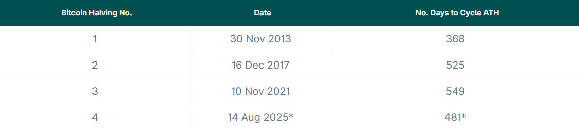 ビットコインは8月中旬に12万4128ドルの史上最高値を更新した後、半減期後の過去3サイクルにおける最高値到達までの平均的な時間とほぼ一致したと述べた