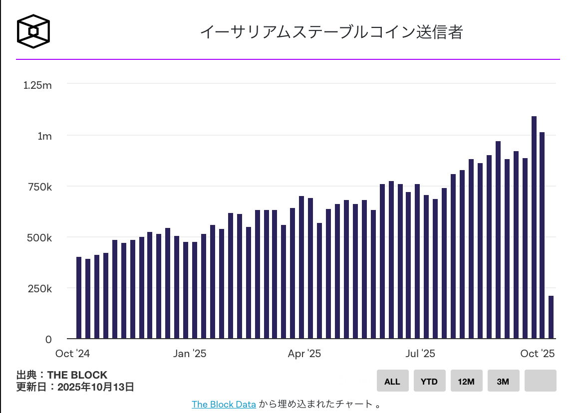 【10/11(土)~14(火)のweb3ニュース10選】イーサリアムステーブルコインの週ごとのユニーク送信者数が100万を突破 / HyperliquidがHIP-3アップグレードを有効化 etc..