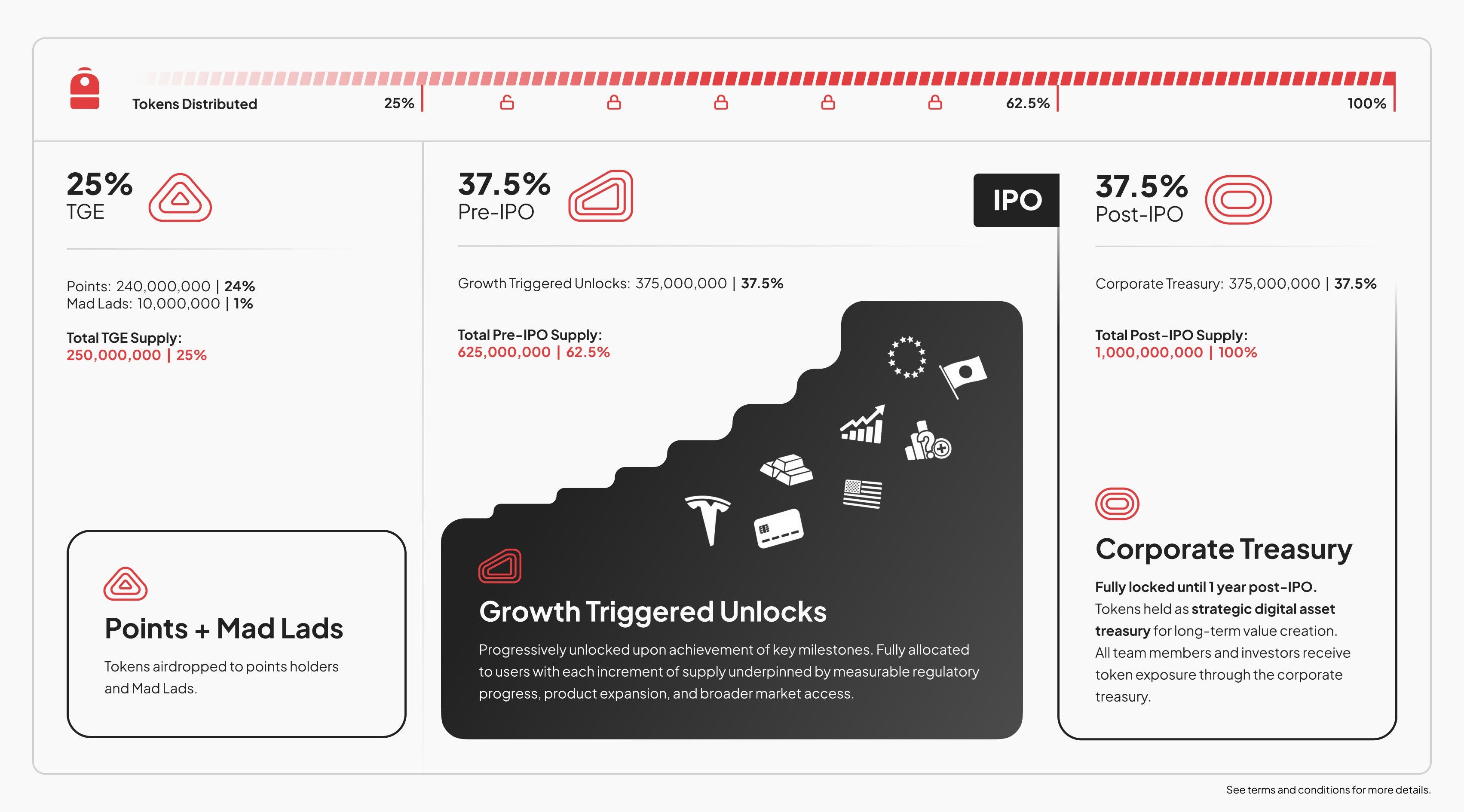上場時点で市場に流通するトークン量を意図的に限定し、短期的な供給過多を避ける設計を採用しています。チーム・VC割当の長期ロックアップ