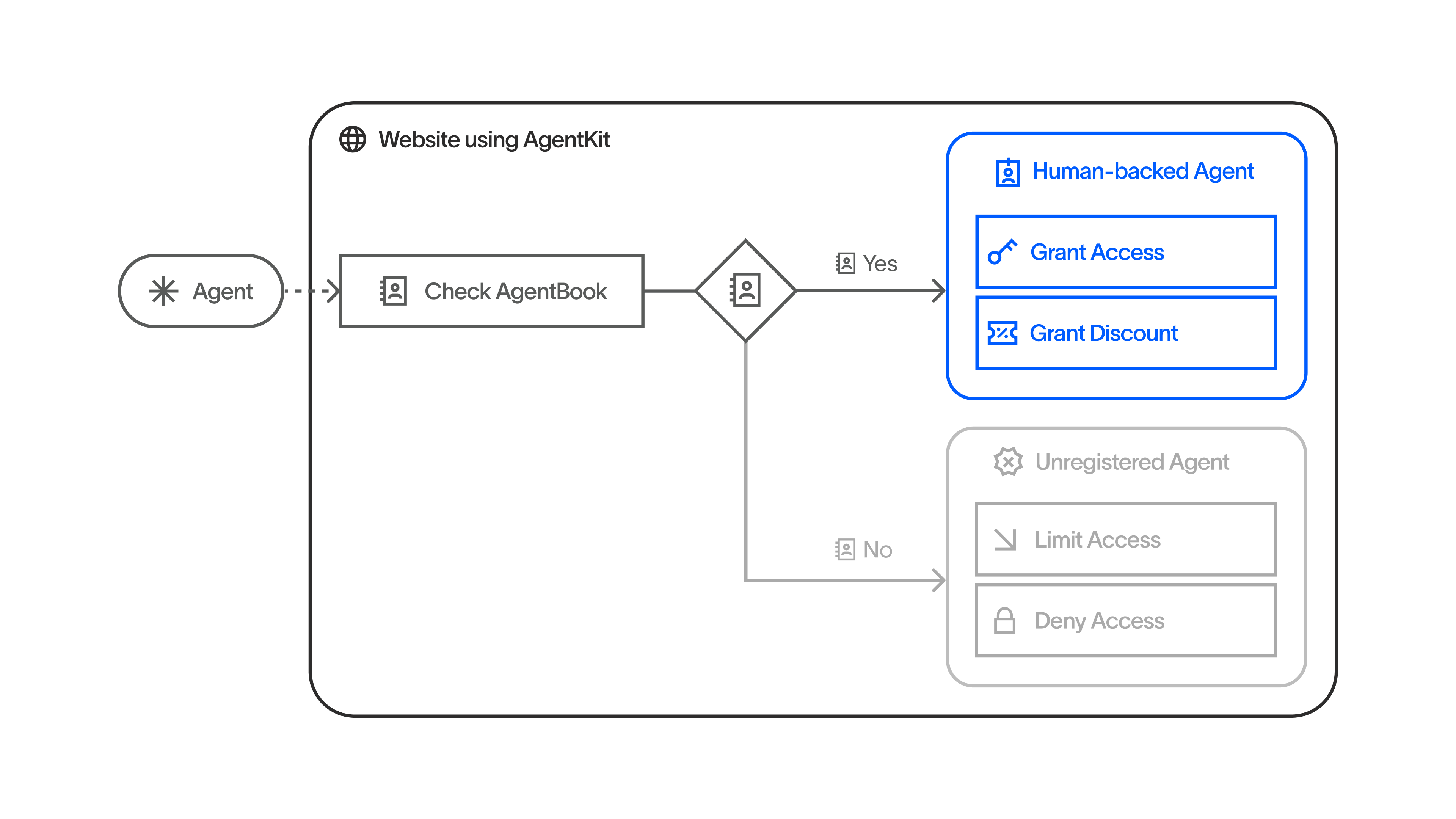 AgentKitはx402 V2の補完的拡張として設計されており、x402が「支払いの仕組み(how)」を担い、AgentKitが「誰が払っているかの証明(who)」を担うという役割分担です。x402を導入済みのウェブサイトはそのまま人間証明機能を追加できます。