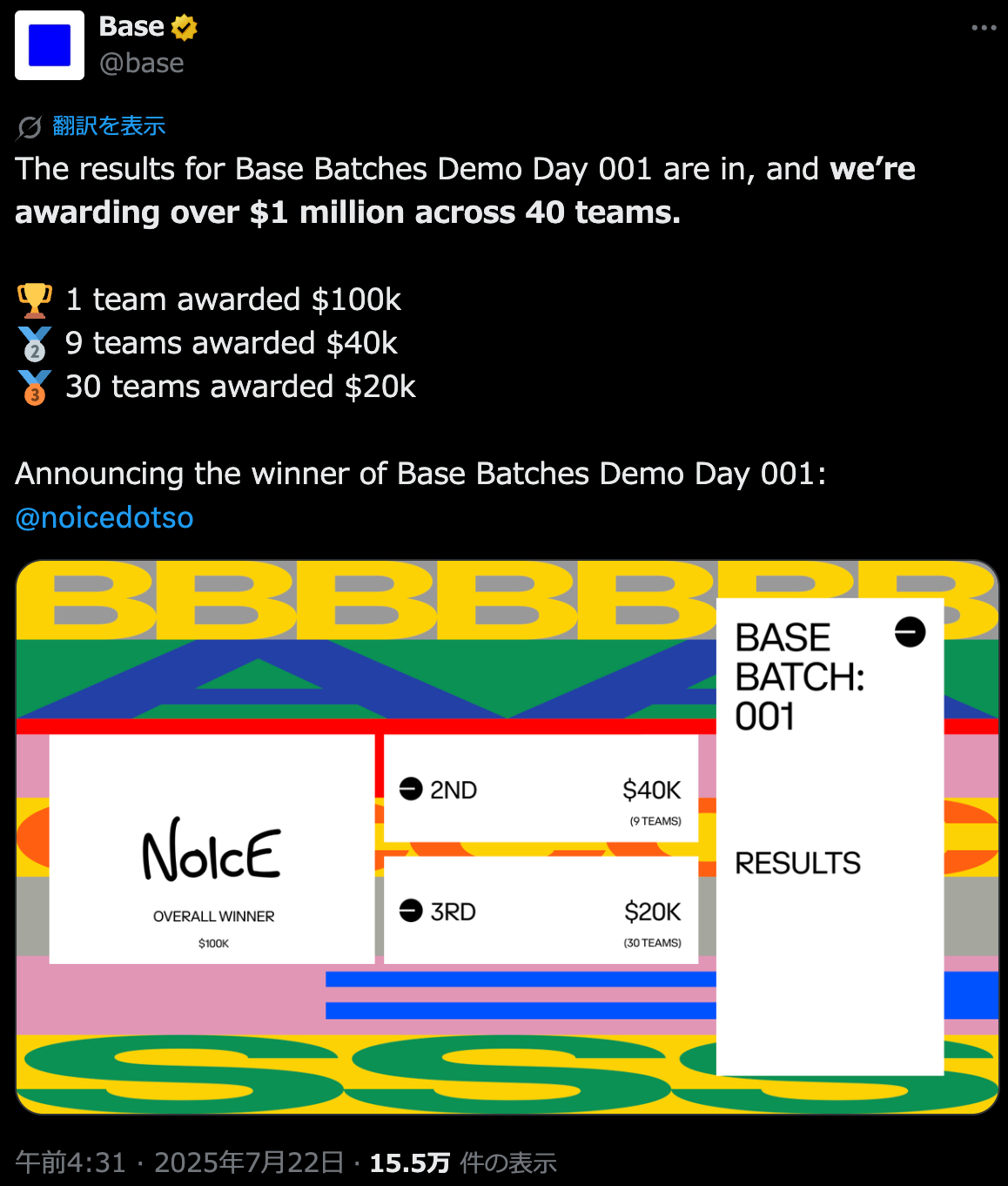 また、2025年9月までの間にBaseとの距離を深めており、Base Appのイベントでのプレゼンテーション、Base Batchesのハッカソンで優勝するなど、Baseエコシステム内での存在感も増していました。