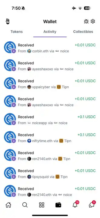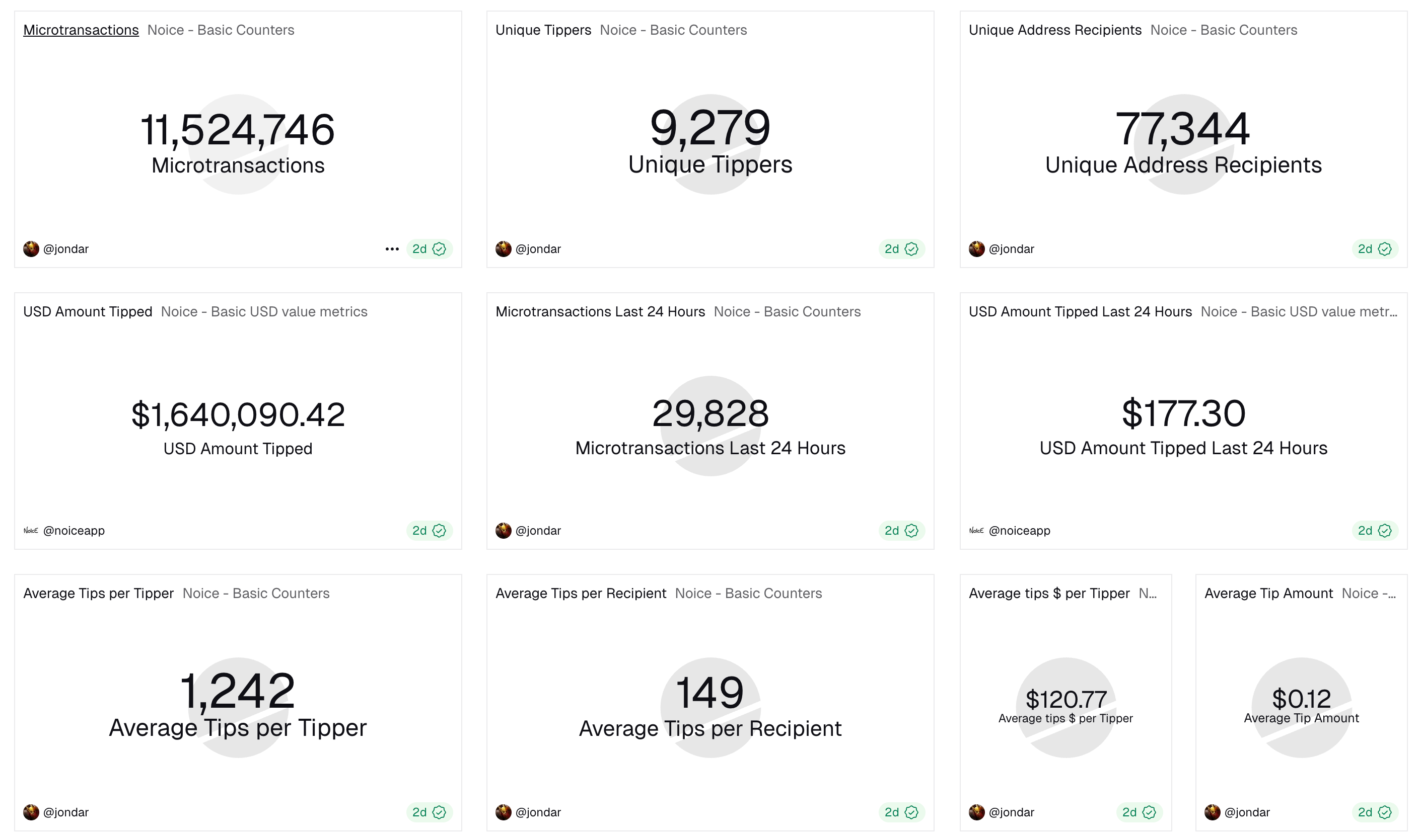 このアイデアはFarcaster共同創設者のDan氏もアプリ内でNoice経由の多数のマイクロ送金通知を受け取ったスクリーンショットを共有するなど、Farcasterコミュニティ内で急速に支持され、サービス開始当初から利用が拡大しました。