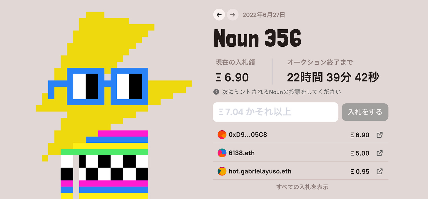 ↑6/27に生成されたNoun。オークンションにかけられている。