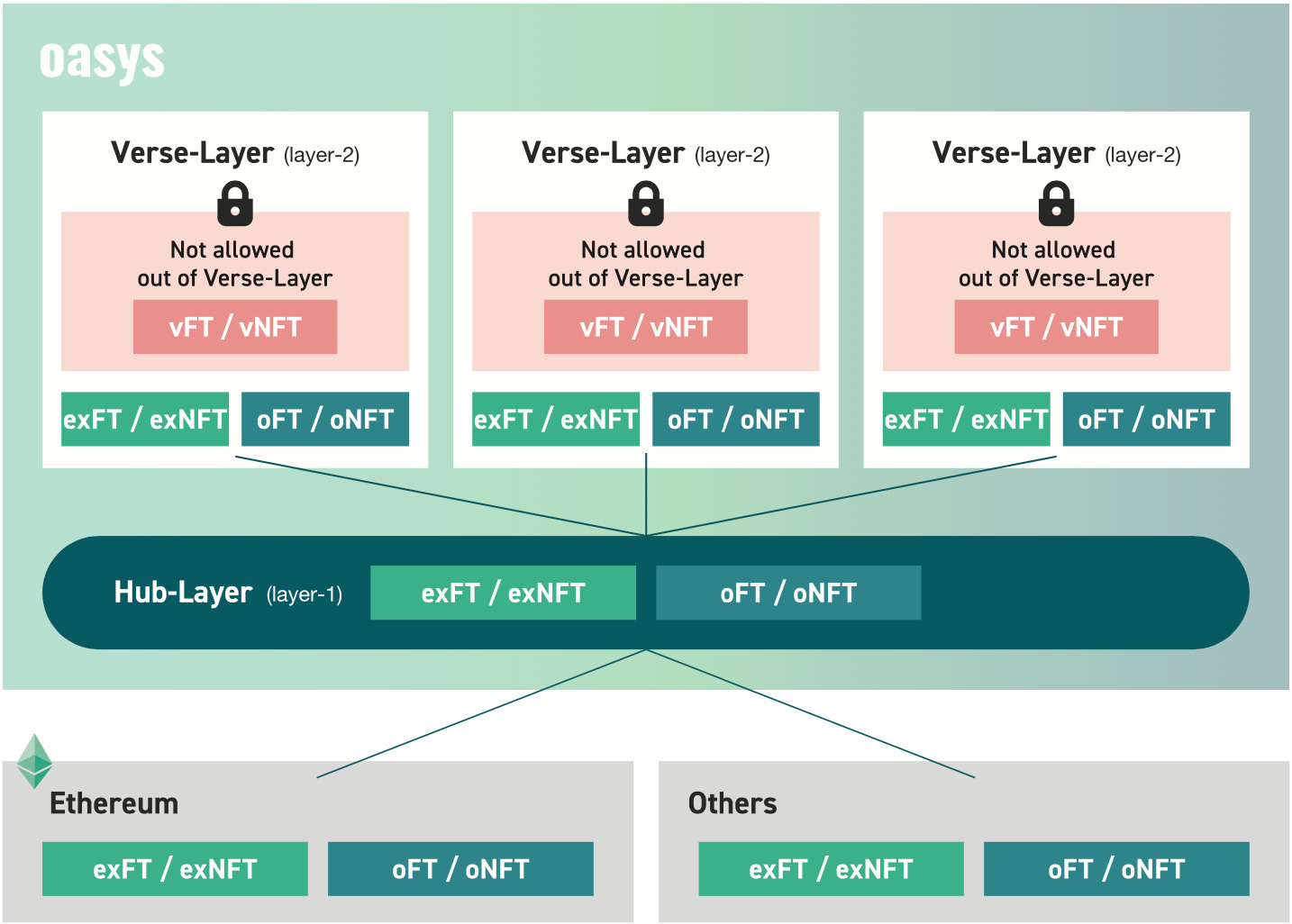 exFT/exNFT:外部ネットワークで作成されたトークン。ブリッジすることでOasy内のHub-LayerでもVerse-Layerのどちらでも利用することができる。