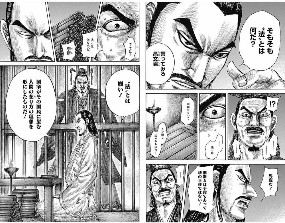 漫画「キングダム」の中で「法律」に言及する場面があります。