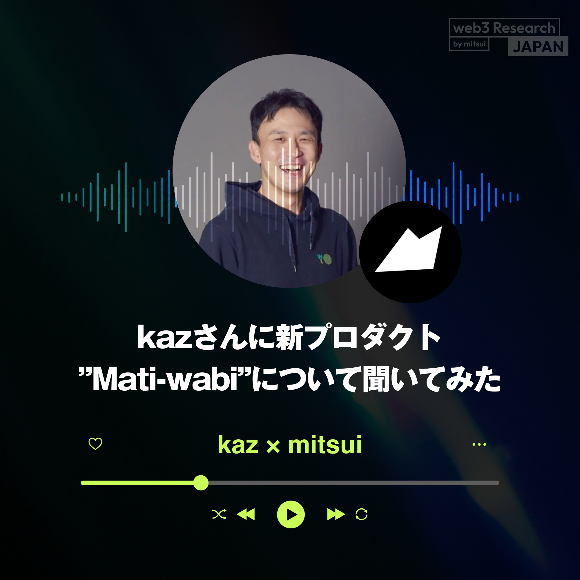 今日もポッドキャストコンテンツをお届けします。本日はゲスト回として「kaz」さんにお越しいただき、新プロダクト「Mati-wabi(マチワビ)」についてお話をお伺いしました。