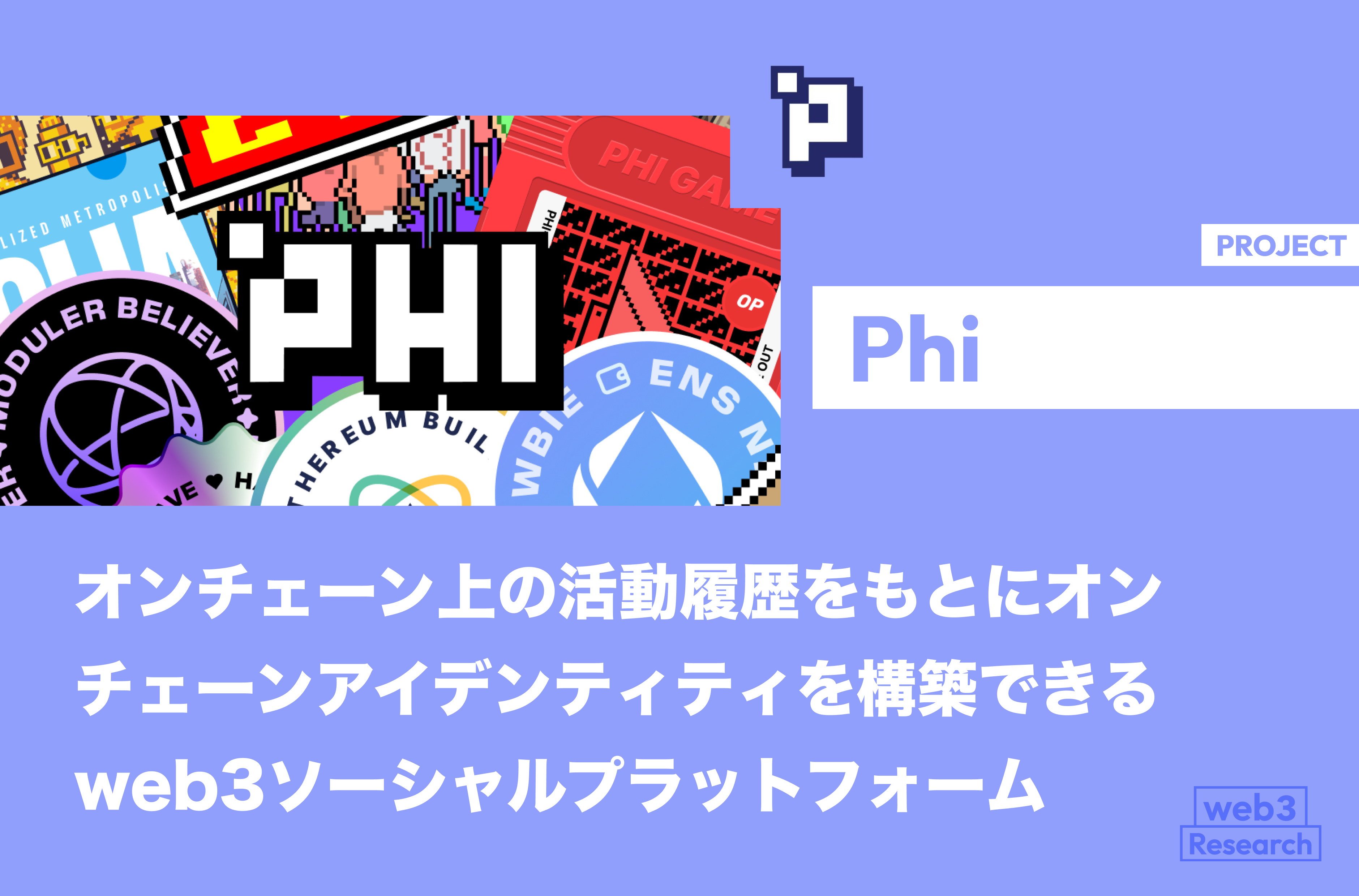 Phiは、ブロックチェーン上の行動履歴をもとにデジタルID(オンチェーンアイデンティティ)を構築するweb3ソーシャルプラットフォーム。