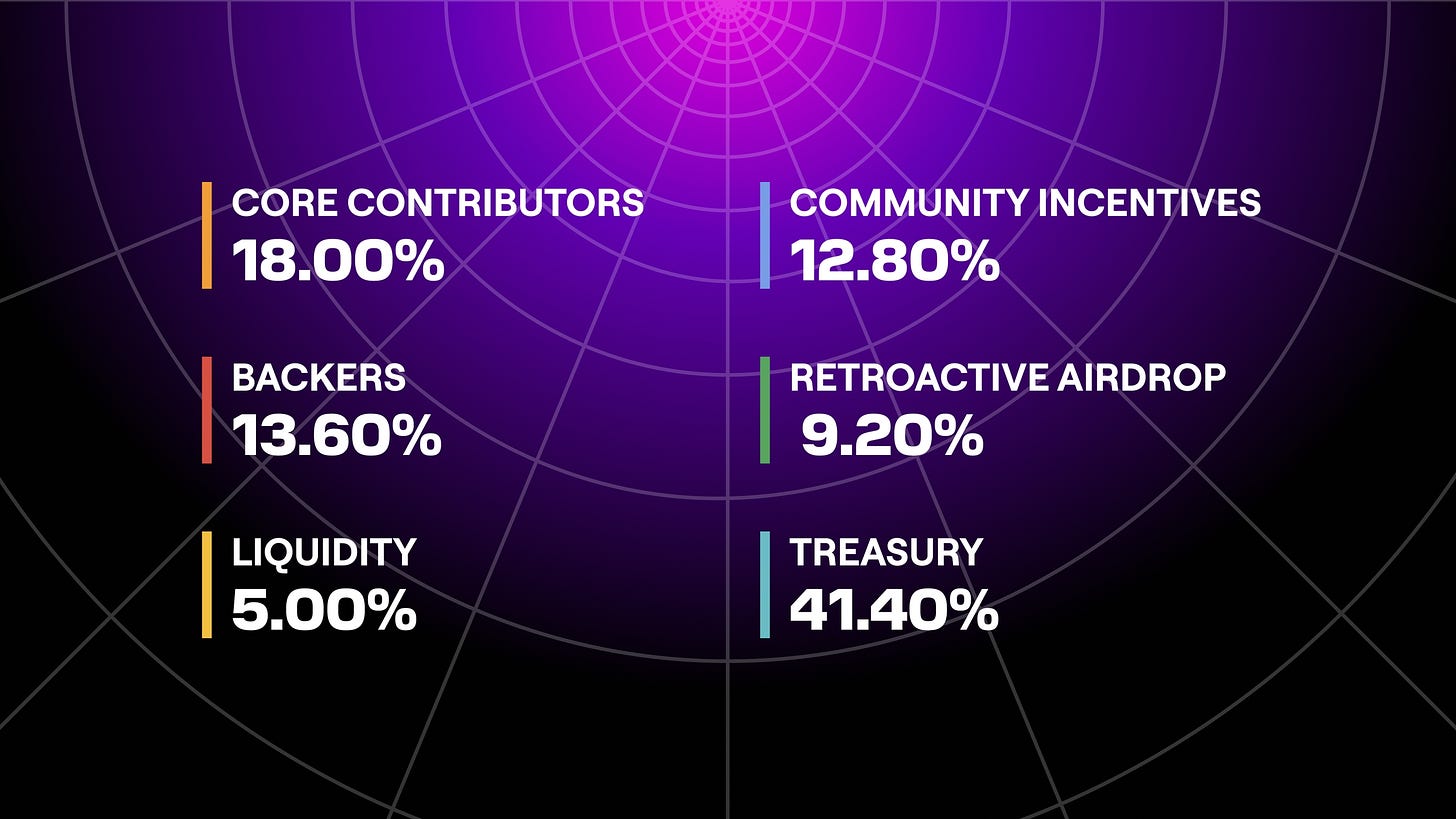 チームや投資家の保有分には長期のロックアップが設定されており、即時に市場に流通するのは流動性提供枠5%やエアドロップ分3.2%など、ごく一部に限られます。