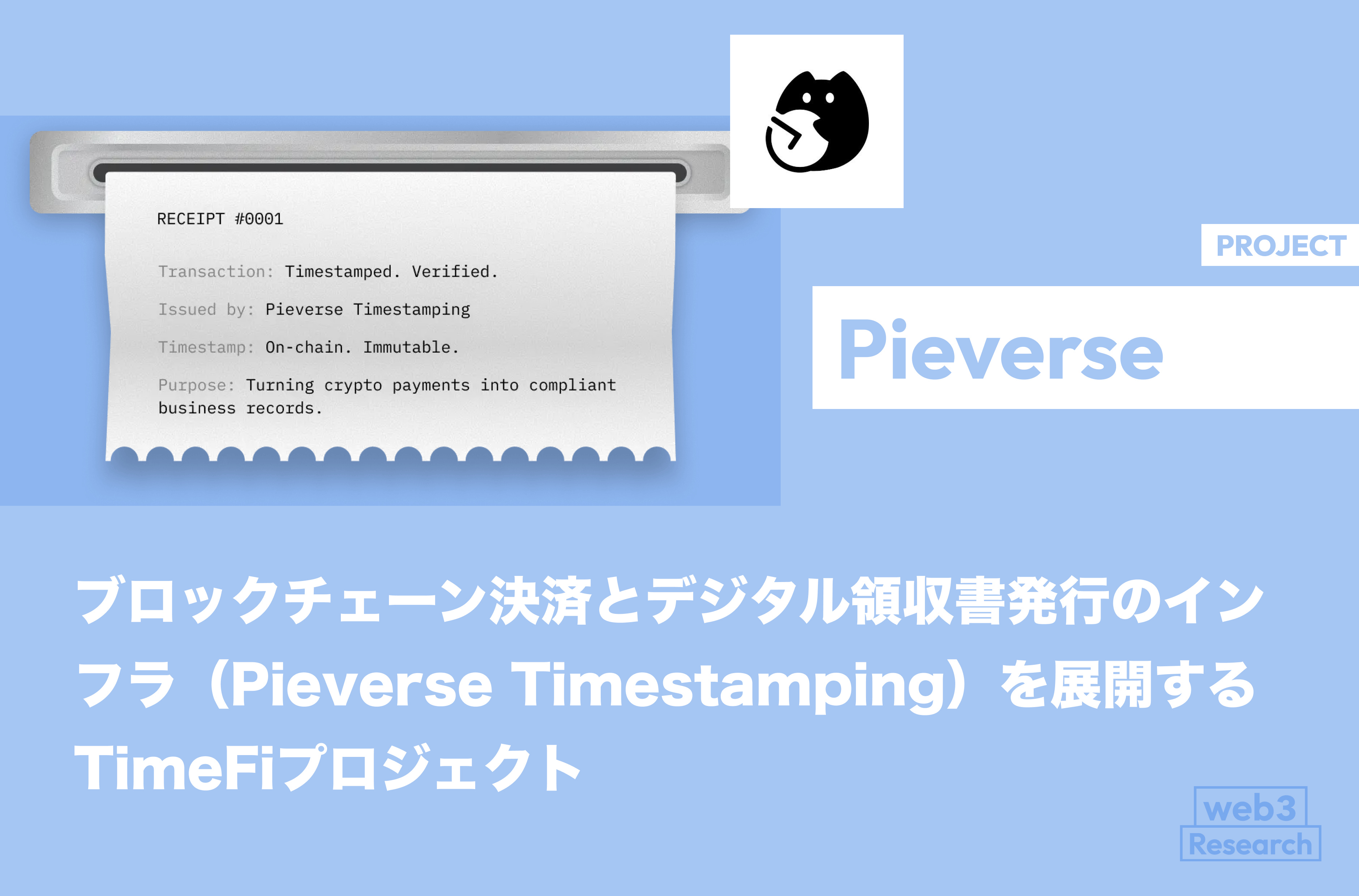【Pieverse】ブロックチェーン決済とデジタル領収書発行のインフラ(Pieverse Timestamping)を展開するTimeFiプロジェクト / 過去には時間オークションやチャレンジ型報酬など様々なプロダクトを展開 / @pieverse_io