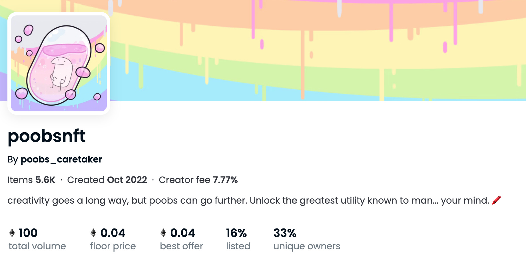 「poobsnft」は、かわいくて遊び心のあるアートを提供することを目的とした著作権フリーのNFTコレクションです。