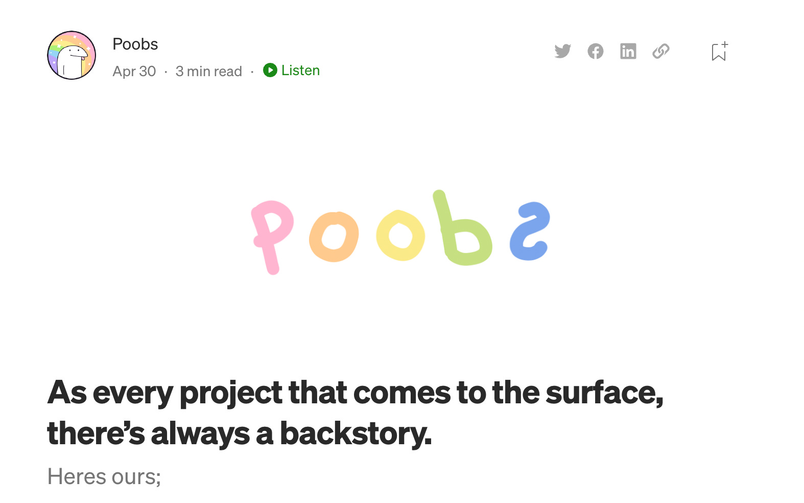 今回のpoobsnftはその問題と向き合い、将来的な価値ではなくて、購入後すぐに使えるようなクリエイティブとコミュニティーを作り、発表しました。加えて、かなり多くの作品をフリーミントで放出しているので、値下がりで文句を言われる心配がほとんどない状態でスタートできています。