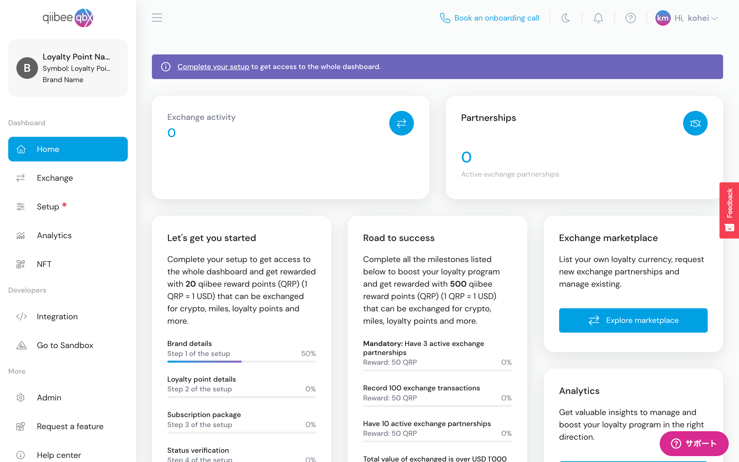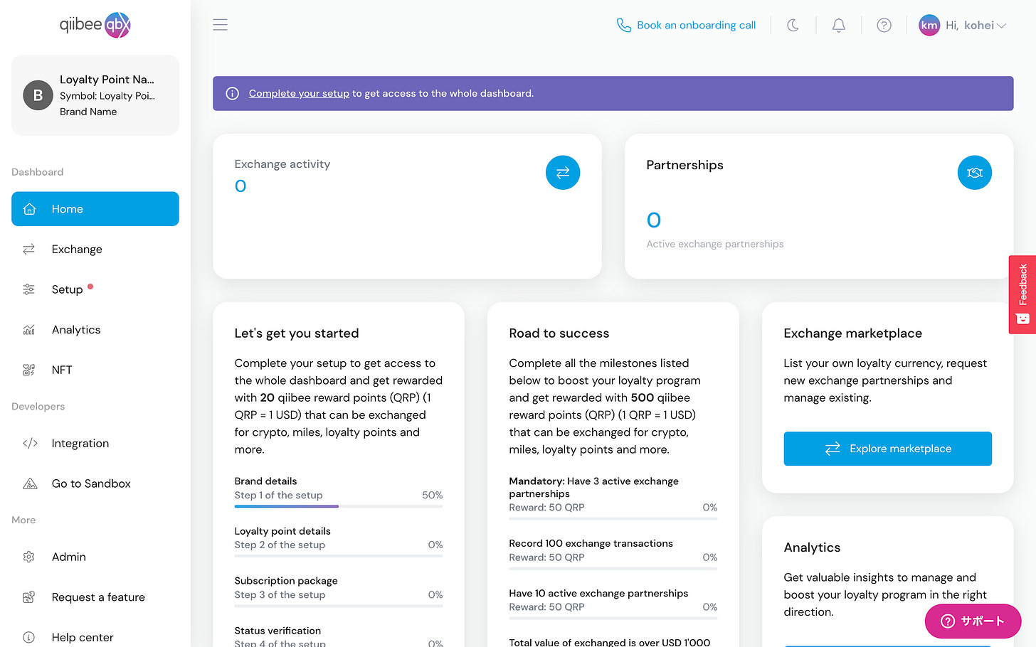その後はPartnersを増やしたり、ユーザーに周知したり、ポイントとの交換報酬を調整したり(NFTを追加することも可能です)して、ロイヤリティプログラムを運用します。すべての情報がわかるダッシュボード画面もついています。