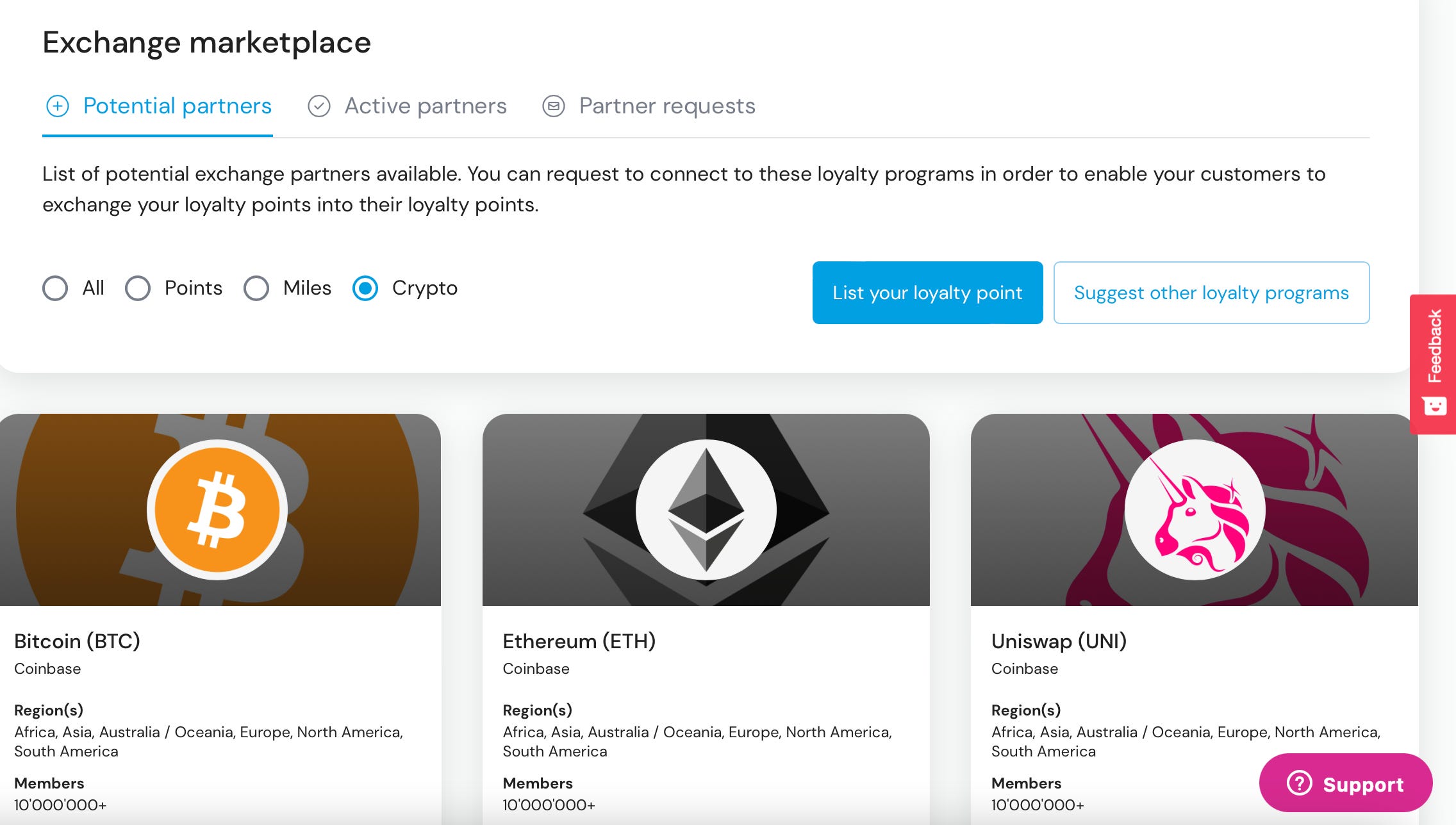 しかし、他社の独自ポイントとの互換性の場合は、”Partner requets”を送って相手から承認を貰うことができれば”Active partners”として互換性が担保されます。