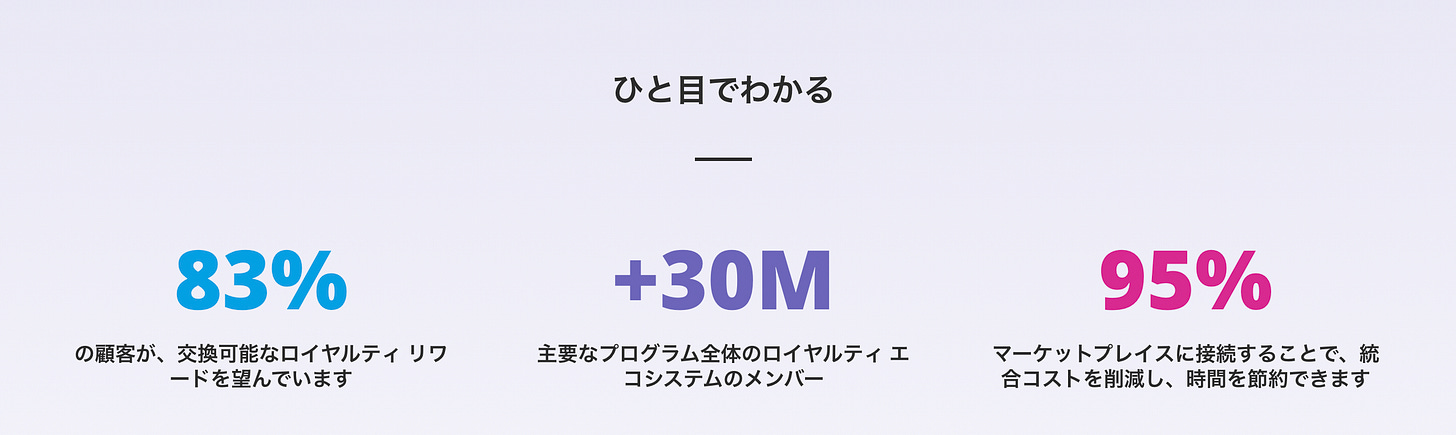 ポイントの統合管理:複数のロイヤルティ・プログラムを統合することができるため、ポイントの管理が簡単になります。