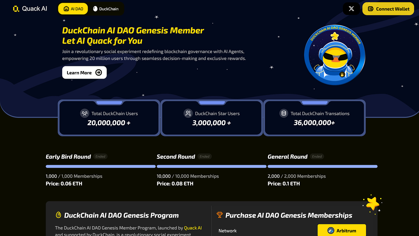 現在、Ethereum・BNB Chain・Arbitrum・zkLink・Merlin・Metis・Solana・TONなど複数チェーンへの統合を果たし、30を超えるDAOやプロトコルがQuack AIを導入しています。