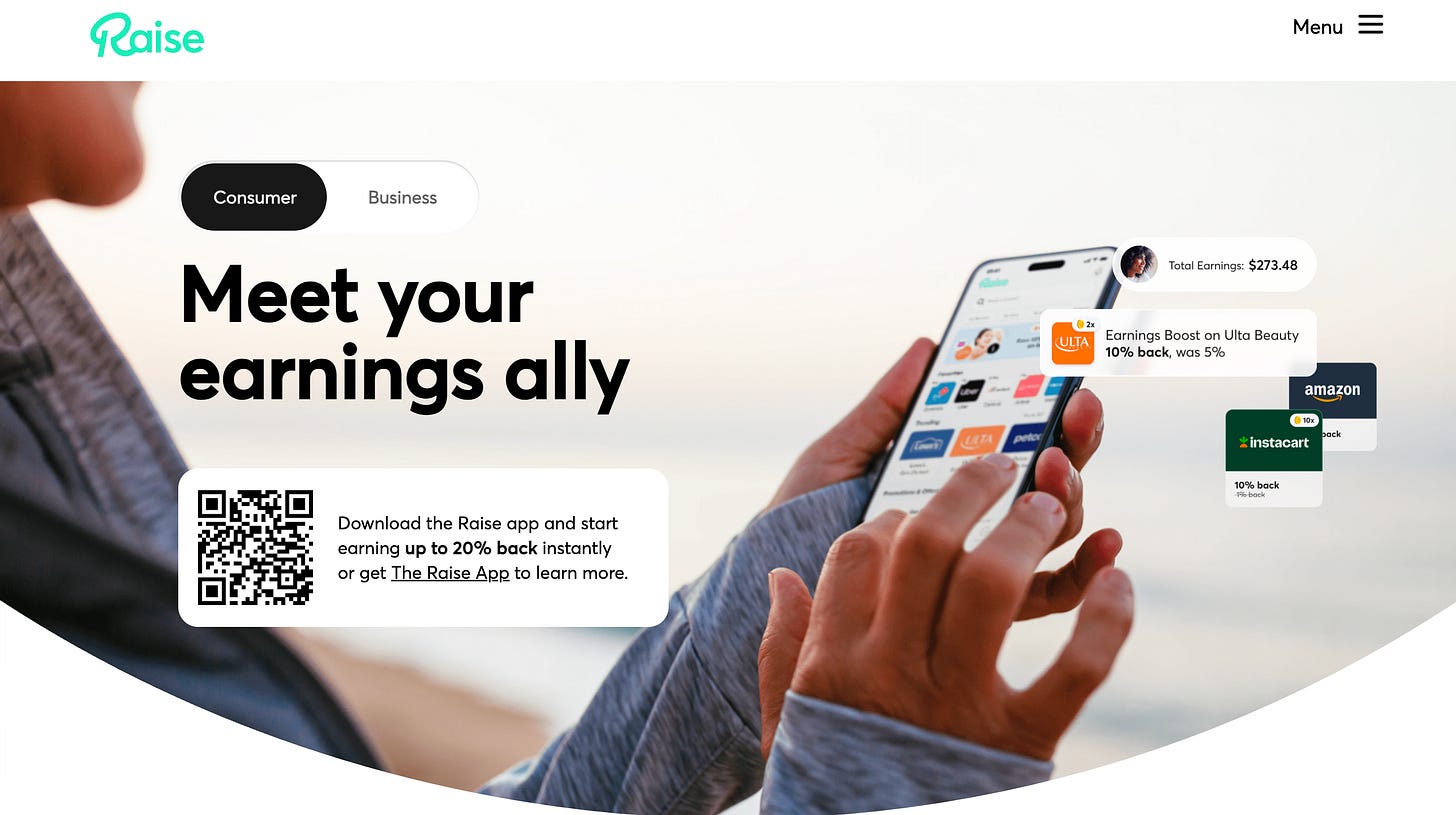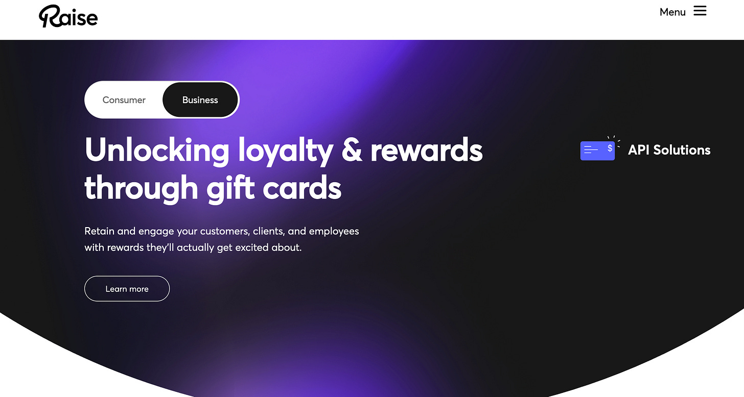 2013年創業のRaiseは、未使用ギフトカードの売買マーケットプレイスとしてスタートし、累計70億ドル超の取引を処理する規模に成長