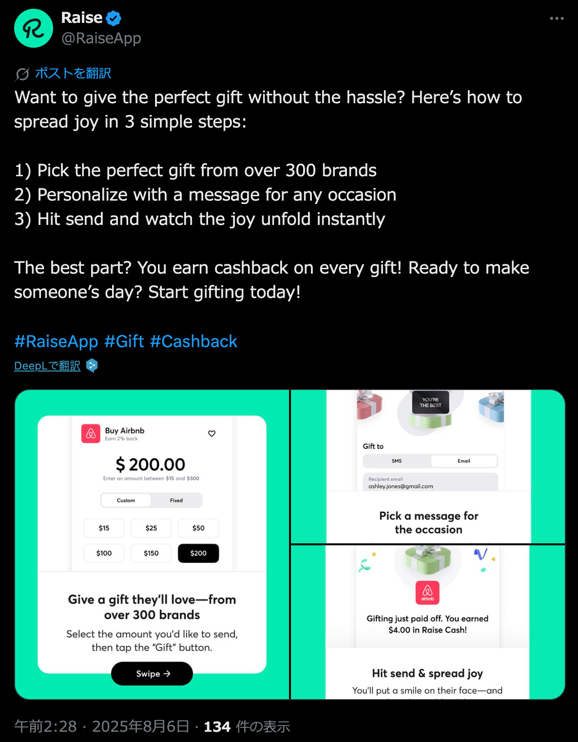 「Raise」は、米国発のデジタルギフトカードとロイヤルティプラットフォームで、2013年にジョージ・ブーシス氏によって創業されました。