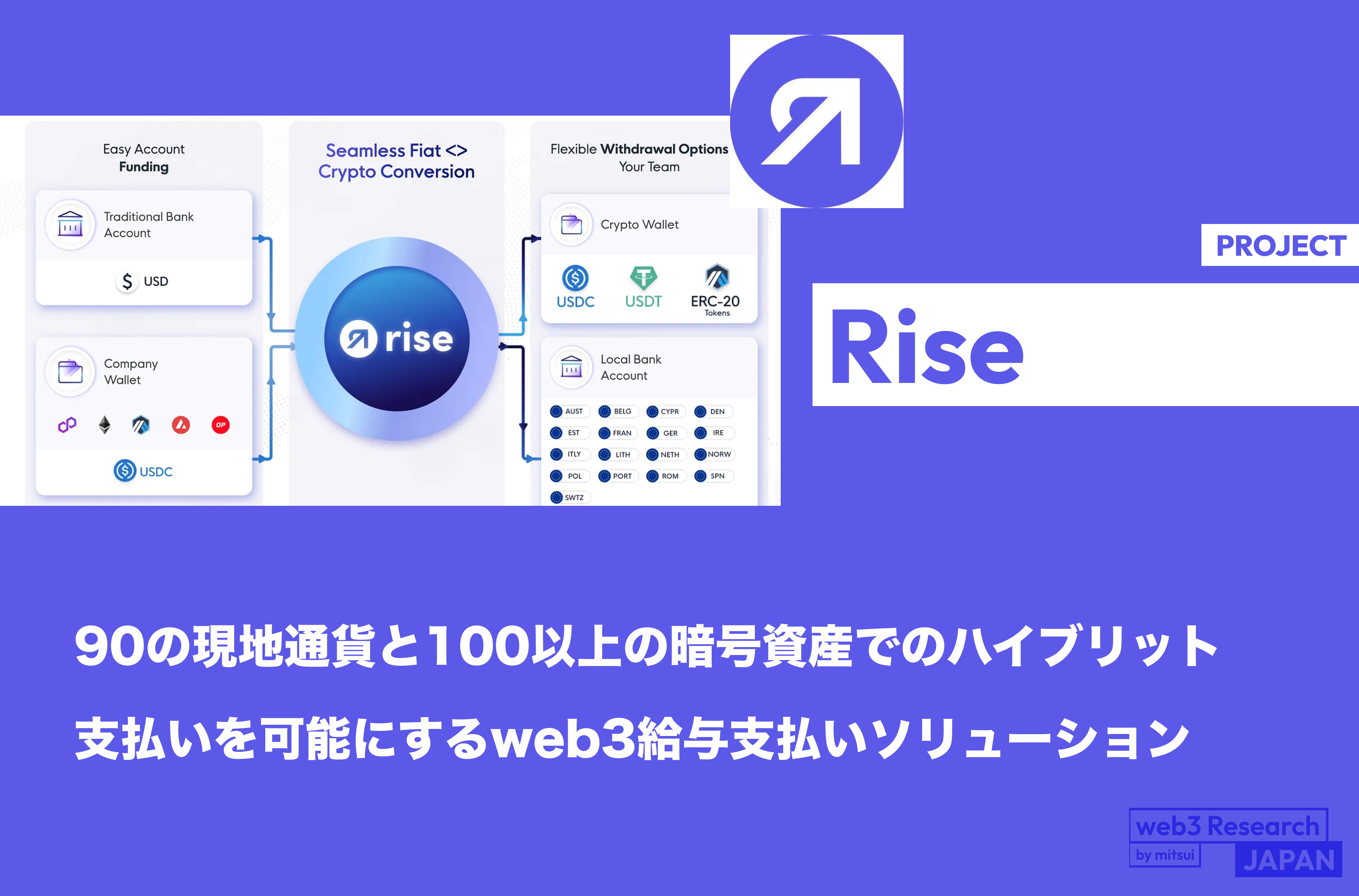 Project【Rise】90の現地通貨と100以上の暗号資産でのハイブリット支払いを可能にするweb3給与支払いソリューション / KYCやAML、税務計算、受け取り後のDeFi運用にも対応 / @rise_pay企業は銀行口座またはウォレットから支払い、受け取り手は現地通貨または暗号資産の好きな方法で受け取りができます。mitsuiNov 25, 2024∙ Paid5Shareおはようございます。web3リサーチャーのmitsuiです。今日は「Rise」についてリサーチしました。🟣Riseとは?✨資金調達履歴と価格設定💬多国籍、多通貨支払いの時代へSubscribe🟣Riseとは?「Rise」は、世界中に分散したチームを1か所で雇用、オンボーディング、現金または暗号通貨で支払う最も迅速で柔軟なソリューションです。This post is for paid subscribersSubscribeAlready a paid subscriber? Sign inPreviousNext