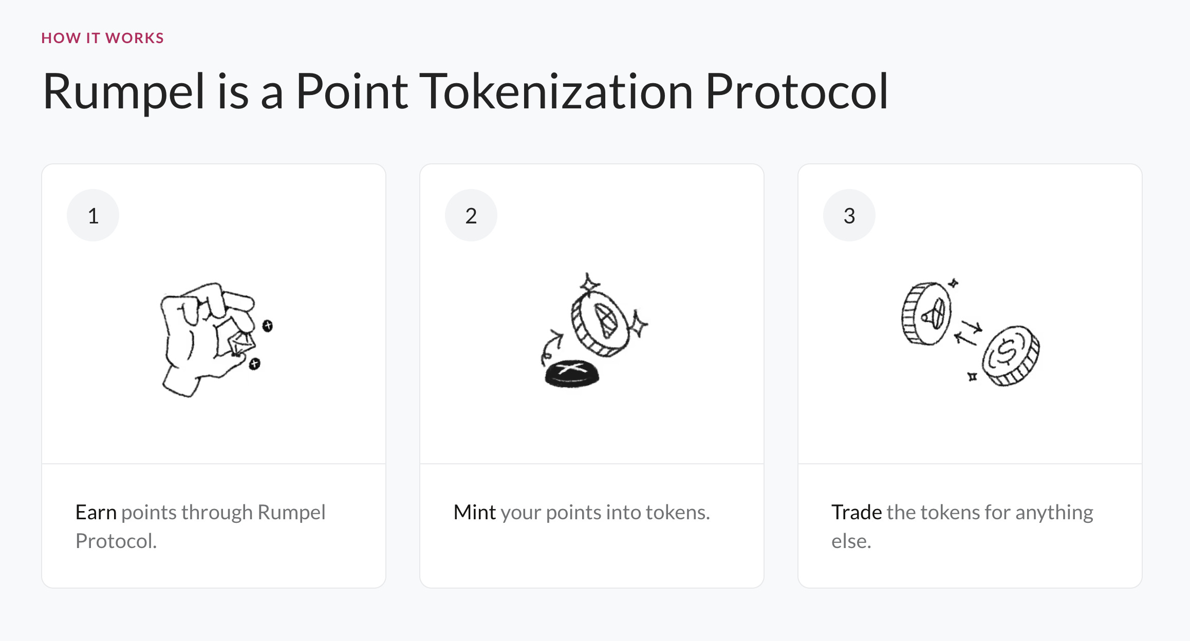 web3プロジェクトのロイヤリティポイントを獲得したユーザーは、Rumpelを使うことで将来のエアドロップを待たずに即座にポイントを換金することができます。