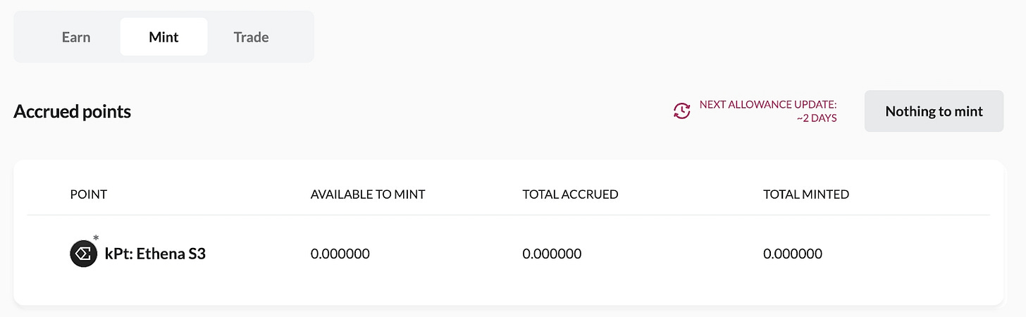 オラクルは約3~5日ごとにポイント残高に基づいたpTokenの新規発行許可量をEthereumメインネット上のVaultコントラクトにプッシュします。この更新は常に数日分の遅延を設けて行われ、万一誤ったデータが報告された場合でも即時に悪影響が出ないようにしています。