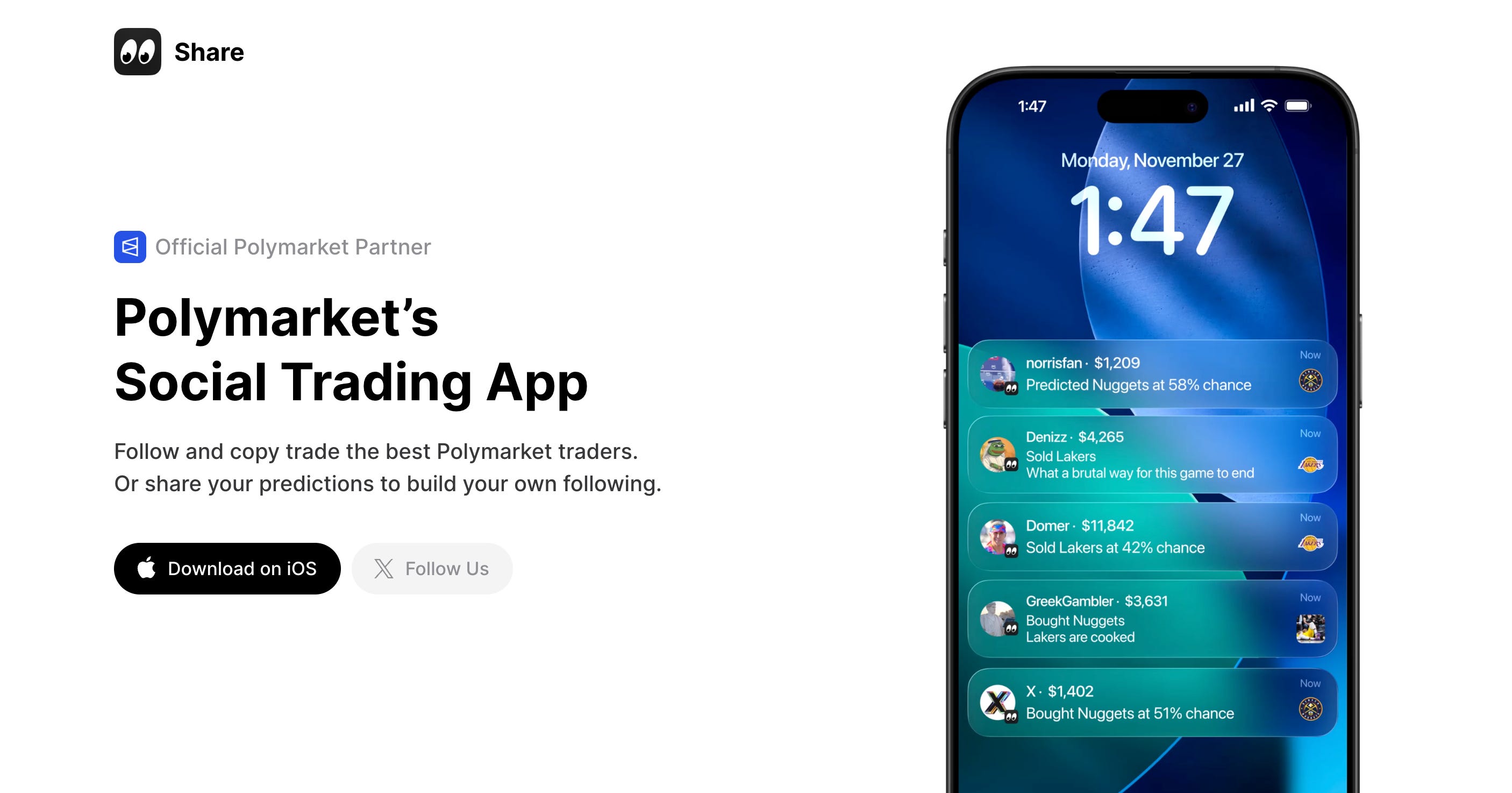 【Share】Polymarket公式パートナーのソーシャルトレーディングアプリ / コピー取引で報酬を得る新しい仕組み / 予測市場に「SNSレイヤー」をつける試み / @sharedotxyz