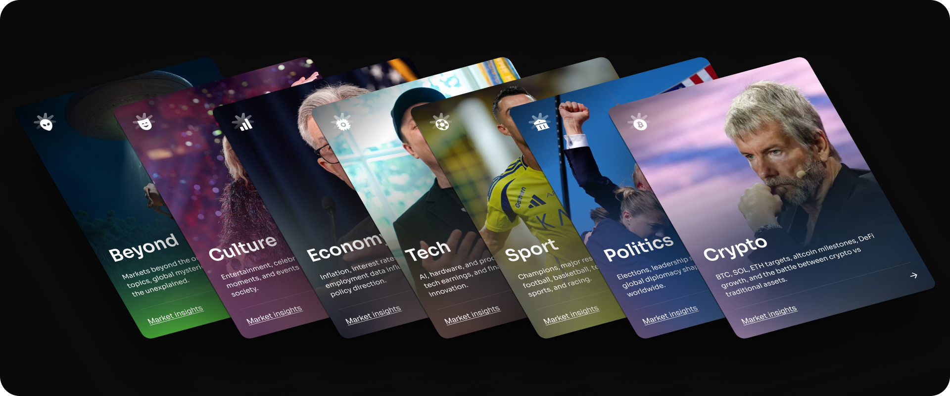 基本的な仕組みは一般的な予測市場と同じで、ユーザーは暗号資産、政治、スポーツ、テクノロジー、経済、文化など様々な現実世界のイベントについて「YES」または「NO」のポジションを売買できます。