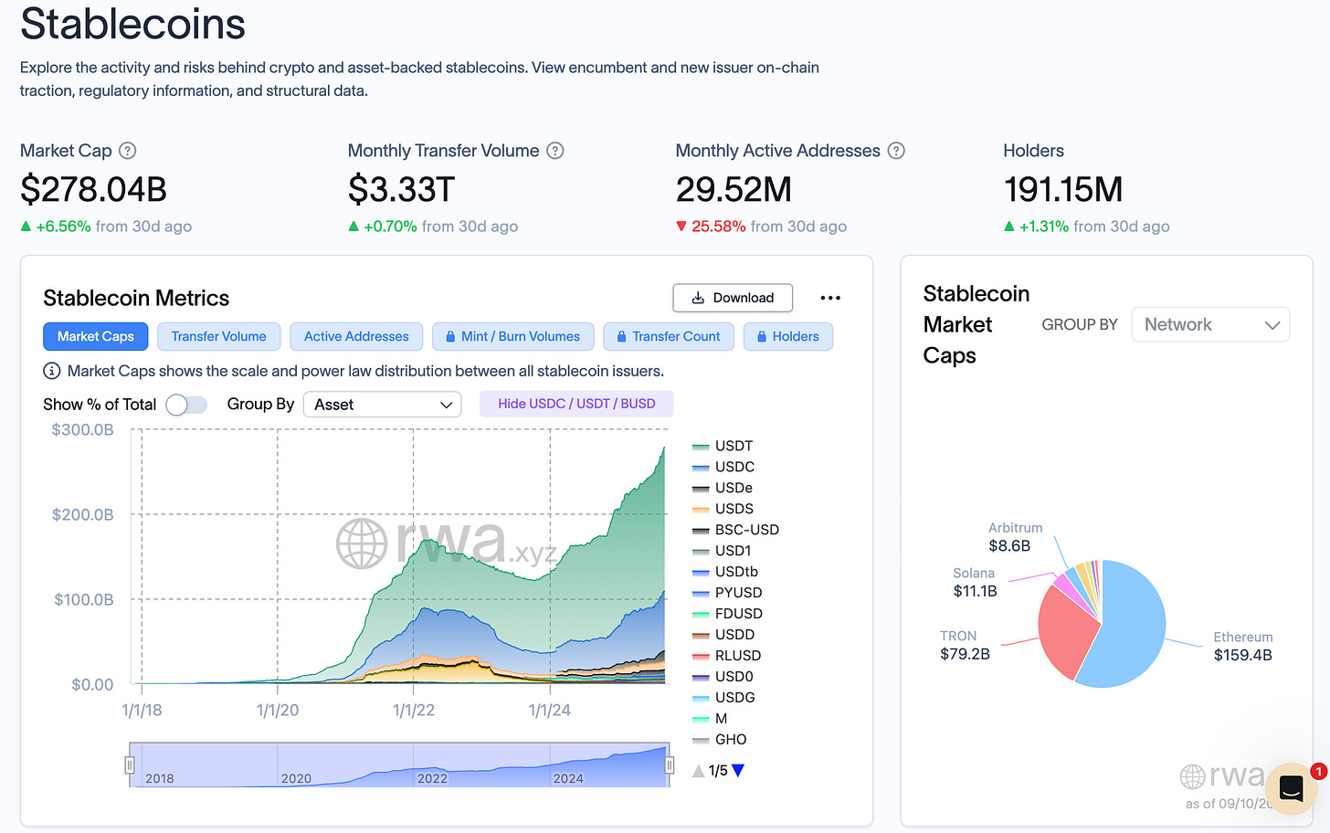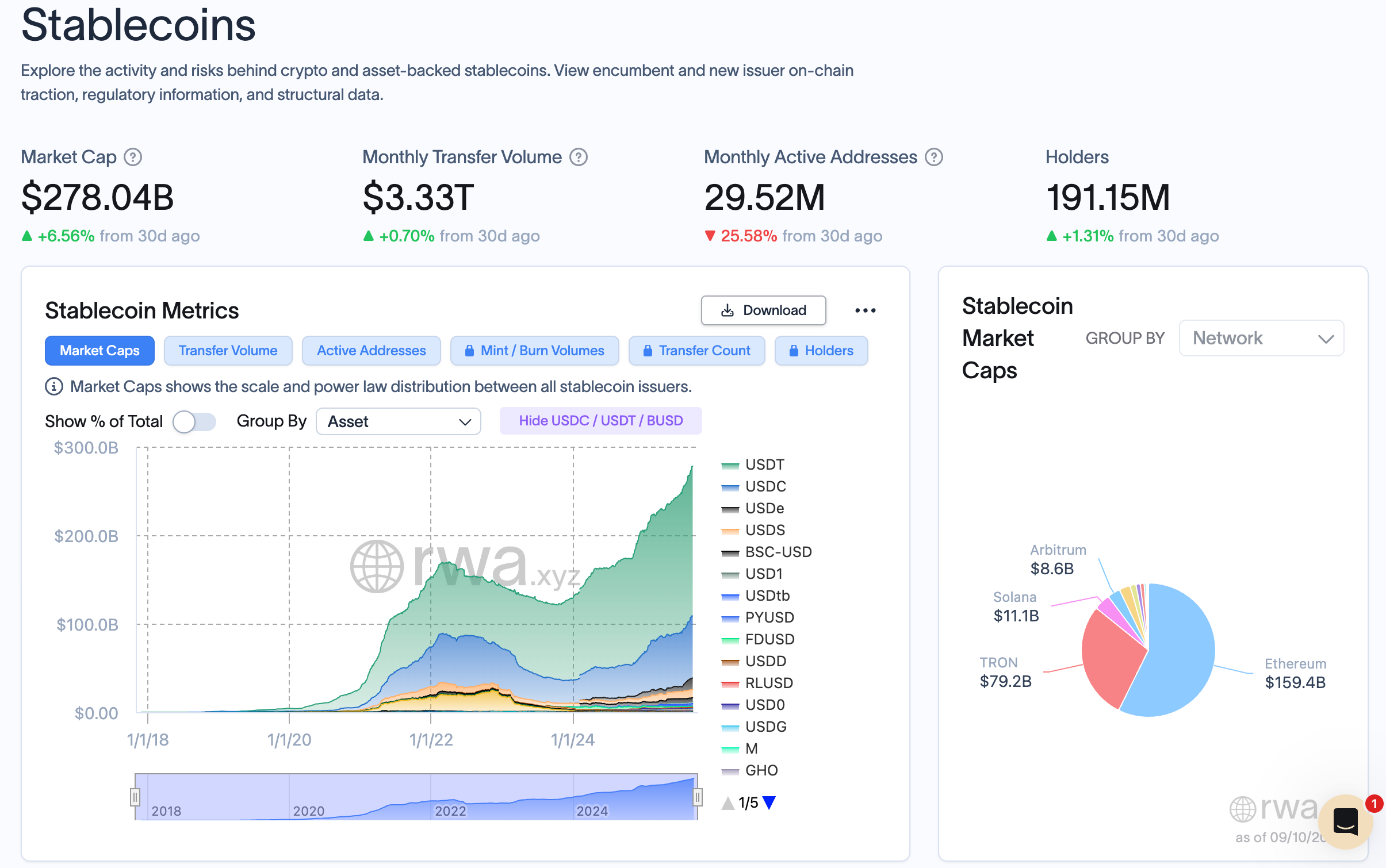 ステーブルコイン市場の拡大が凄まじいです。ここまでの規模感なのに、月次で6.56%増加しているので、相当なペースで伸びていることがわかります。