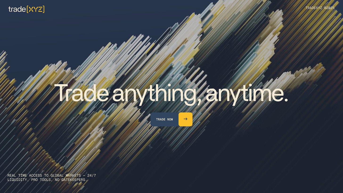 「Trade.xyz」は、あらゆる資産を24時間365日取引可能にすることを掲げたクロスアセットの永久先物(Perpetual)プラットフォームです。