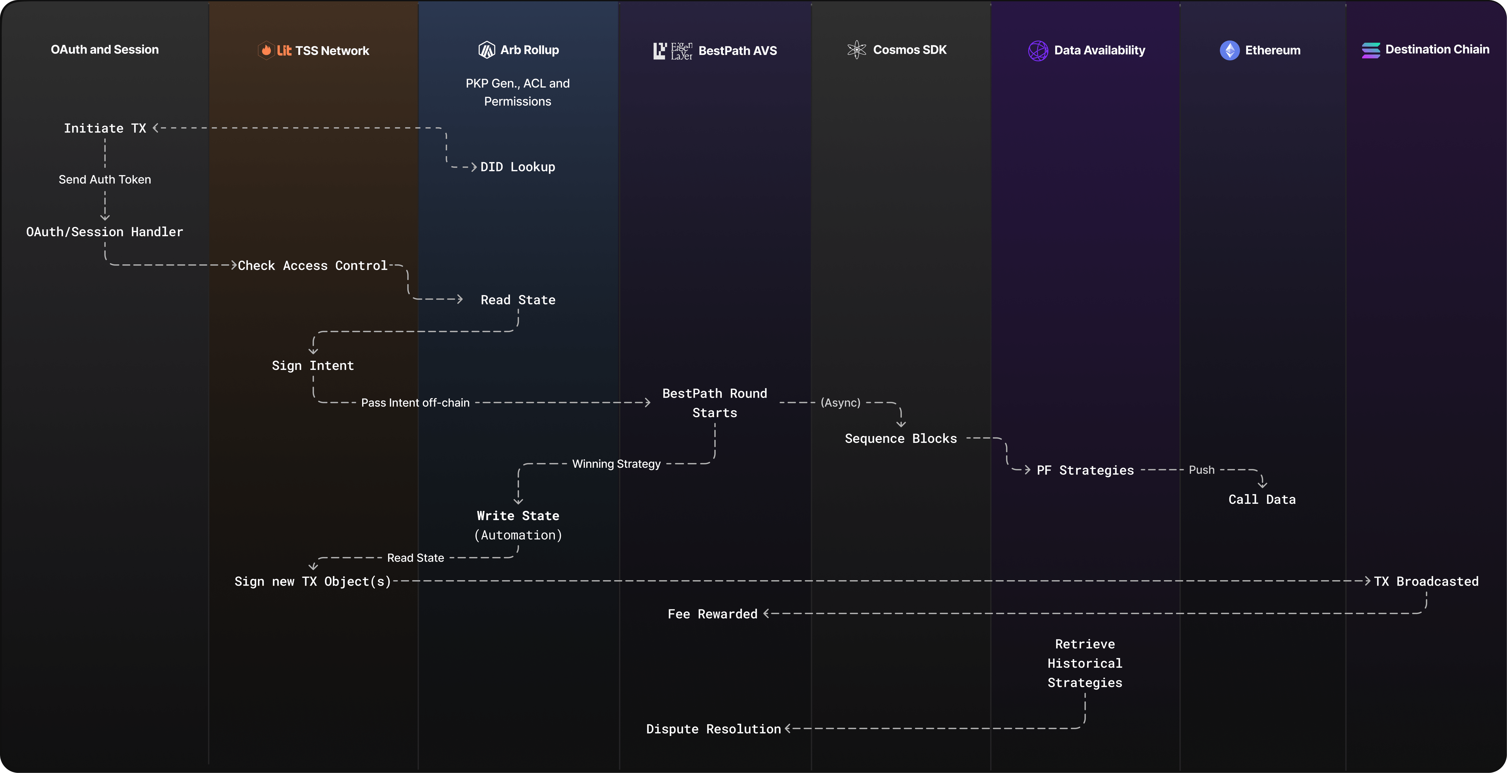 その技術基盤は「Unchained」と「BestPath AVS」で構成されており、Unchainedは実行・署名・ステート管理を担当し、BestPath AVSは暗号資産トランザクションを最適に実行する経路を決定(まるでGoogleマップが最適ルートを導くように)。