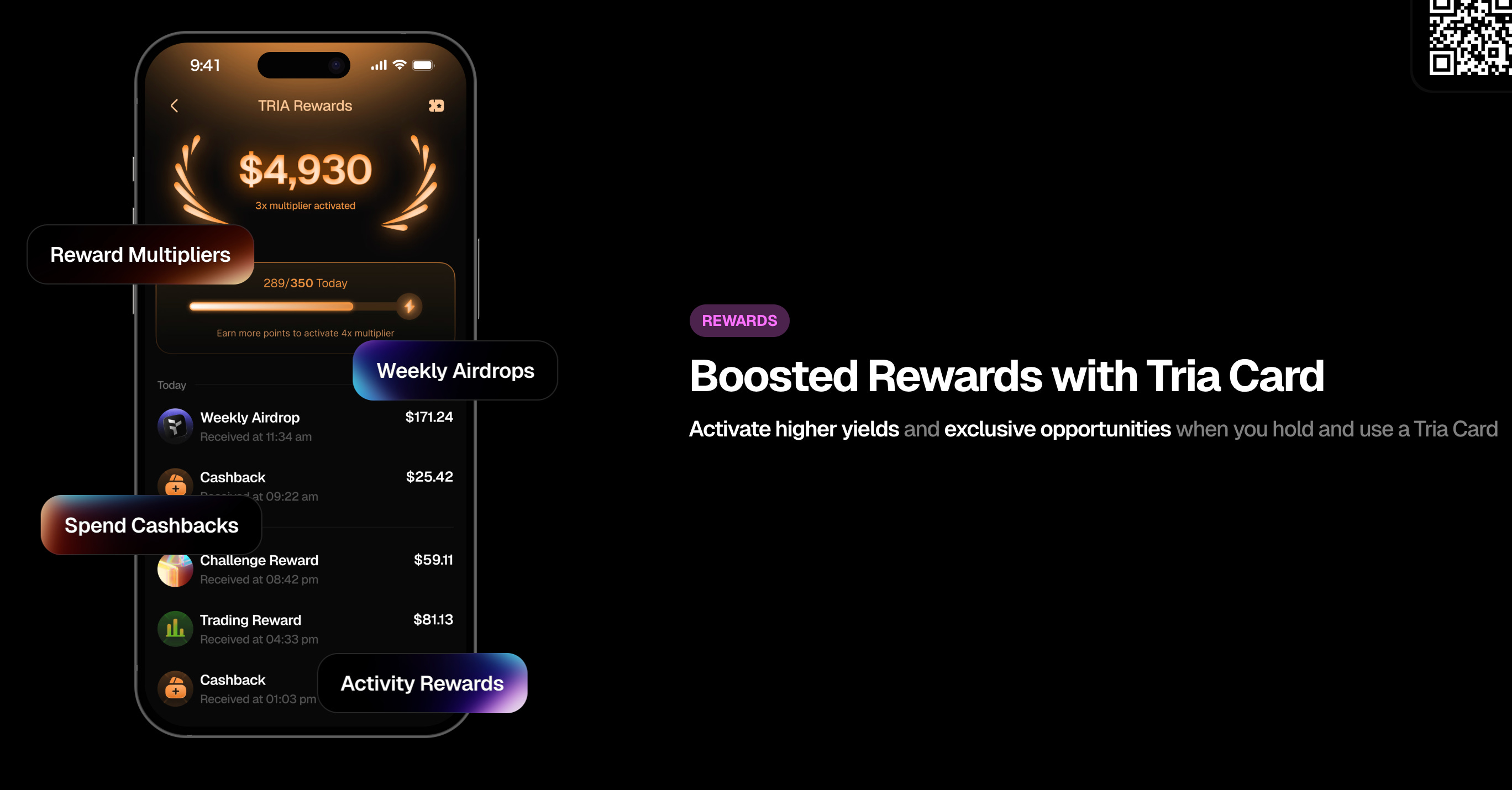 また、このEarn機能はTriaカード保有者向けに優先提供されており、カードの利用によってさらに高い利回りが適用される仕組みも用意されています。