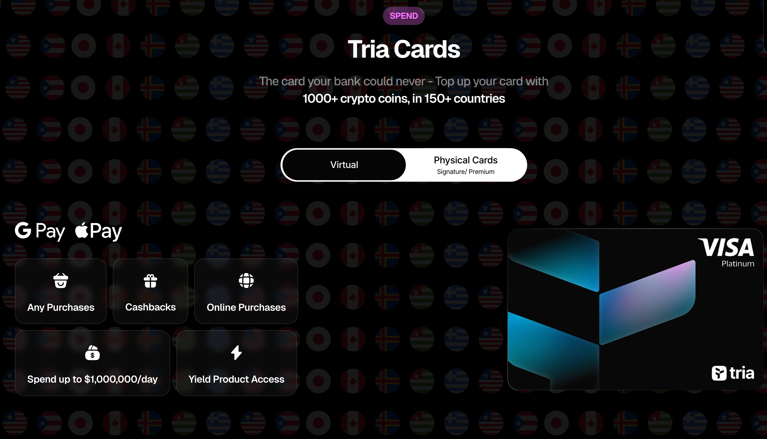 いくつかの違いはあるものの、Triaはすでに世界中で利用可能であり、ほぼあらゆるトークンでの支払いに対応し、最大6%のキャッシュバックを提供しています。