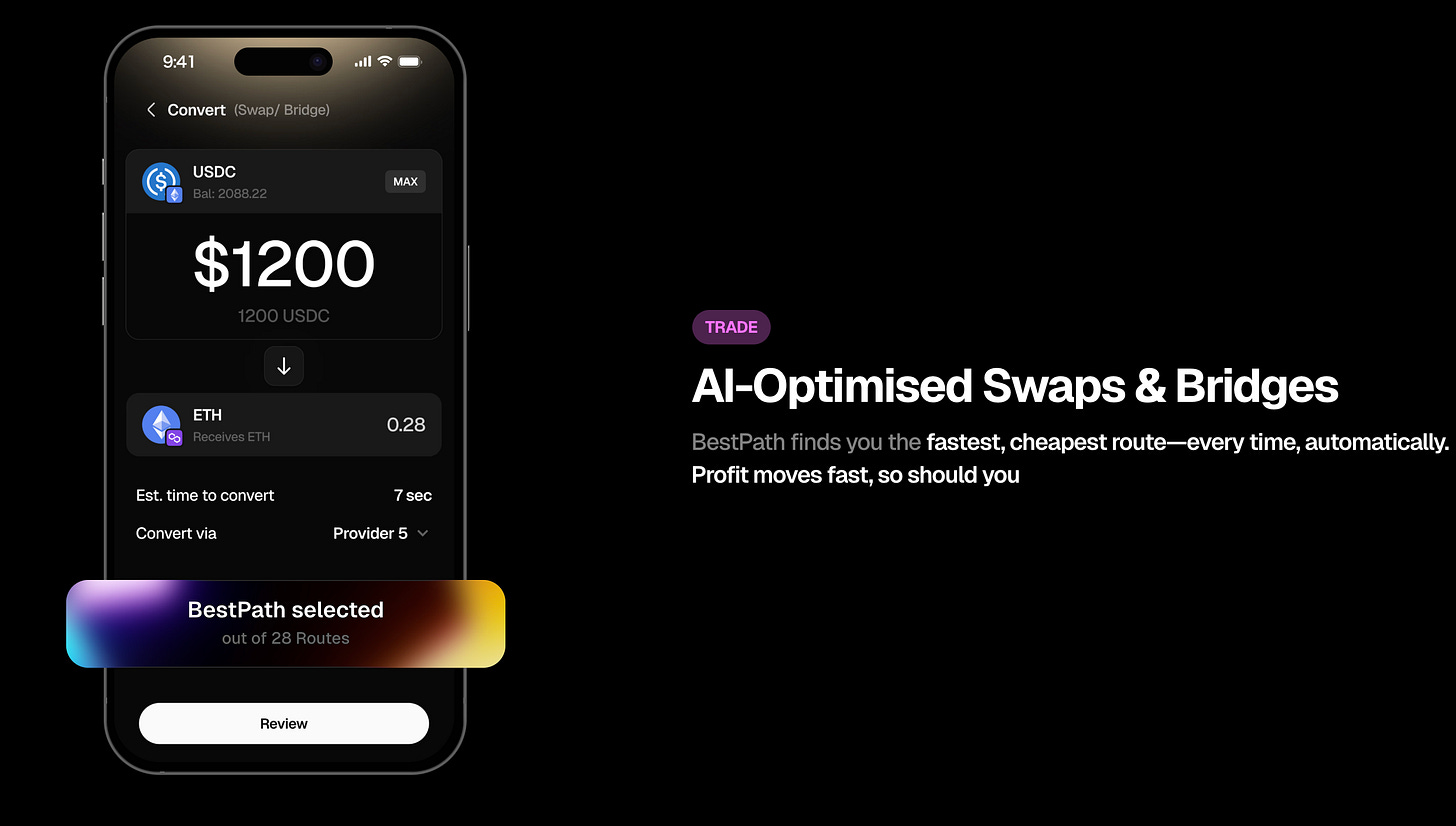 これらの機能によって、ユーザーが異なるブロックチェーン間で資産を交換・移動する際、BestPathが最速・最安のルートを自動探索し、複数のDEXやブリッジオプションから最適経路で実行します。例えば、Ethereum上のETHをPolygon上のPOLに交換するといった複雑な操作も、裏側でのブリッジとスワップをBestPathが自動処理し、数秒程度で完了します。