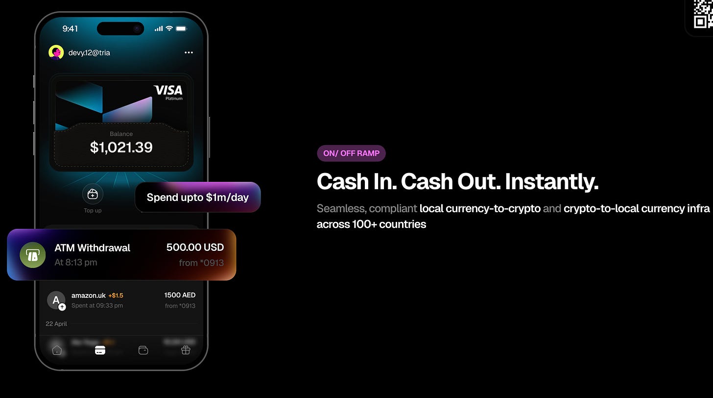 ユーザーはTriaカードを使って即座に暗号資産を購入したり、Triaウォレット内の暗号資産を現地通貨に換えて銀行口座へ直接出金したりすることができます。