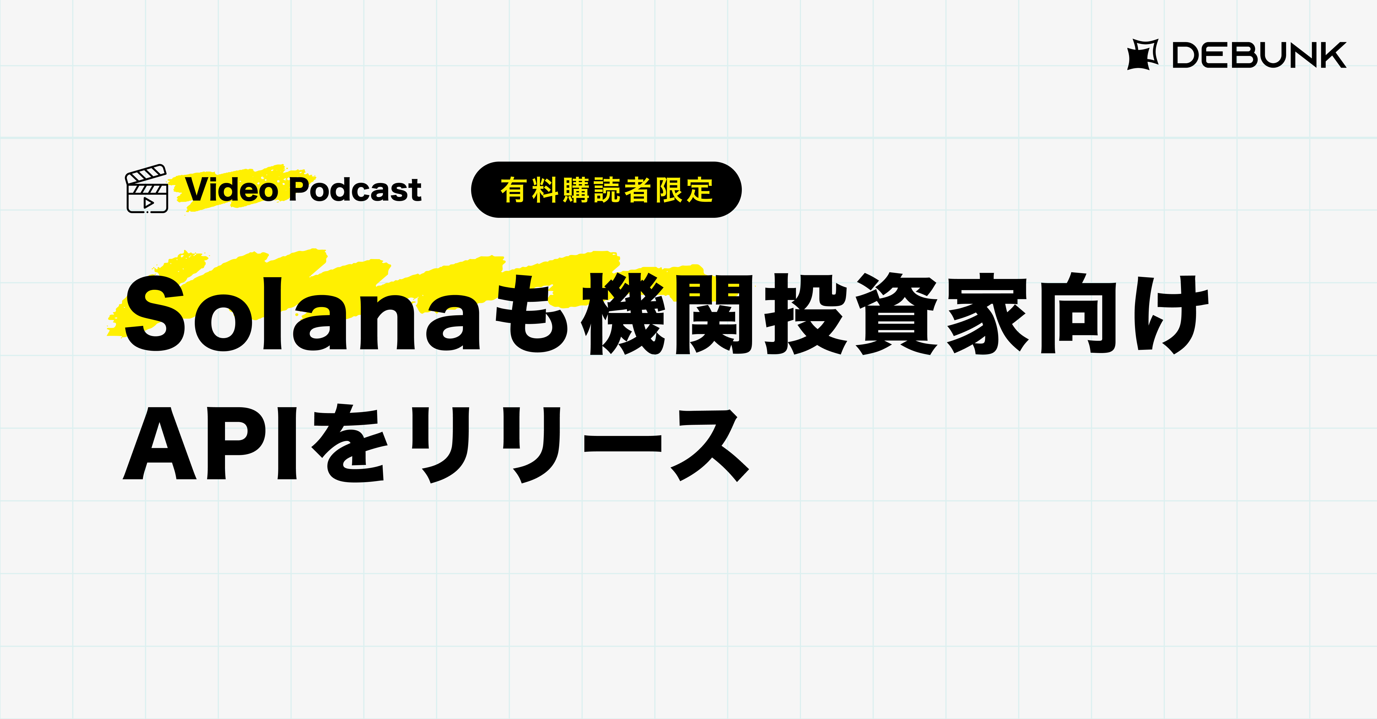 Playback speed×Share postShare post at current timeShare from 0:000:00/0:00Paid episodeThe full episode is only available to paid subscribers of DEBUNK(web3 Research)Subscribe to watchSolanaも機関投資家向けAPIをリリース毎週土曜日は有料購読者限定でビデオポッドキャストmitsuiMar 27, 2026∙ PaidShareおはようございます。web3リサーチャーのmitsuiです。今日は「1週間の更新した記事の振り返りとポッドキャスト」です。毎週土曜日は有料購読者限定でビデオポッドキャスト形式での振り返りを実施しています。ぜひご覧ください!SubscribeContinue reading this post for free, courtesy of mitsui.Claim my free postOr purchase a paid subscription.DEBUNK Podcast🇯🇵🇺🇸🇰🇷🇨🇳🇪🇸の5ヶ国語で展開されるweb3ニュースレターの日本語版。「1日5分でweb3をより深く学ぶ」をコンセプトに、web3の注目トレンドやプロジェクトの解説、最新ニュース紹介などのリサーチ記事を毎日配信しています。🇯🇵🇺🇸🇰🇷🇨🇳🇪🇸の5ヶ国語で展開されるweb3ニュースレターの日本語版。「1日5分でweb3をより深く学ぶ」をコンセプトに、web3の注目トレンドやプロジェクトの解説、最新ニュース紹介などのリサーチ記事を毎日配信しています。SubscribeListen onSubstack AppApple PodcastsSpotifyYouTube MusicYouTubeRSS FeedAppears in episodemitsuiRecent Episodes資本主義に飲み込まれたクリプトMar 24 • mitsui普及の鍵はインフラかUXかMar 13 • mitsuiいかにして社会インフラを作るかMar 11 • mitsui必要なのは規制強化ではなく規制緩和と教育Mar 4 • mitsuiクリプトはこの先どこに行くのかFeb 25 • mitsuiWeb4の時代へ突入Feb 20 • mitsuiニュースレターの名称を「DEBUNK」に変更しましたFeb 13 • mitsui