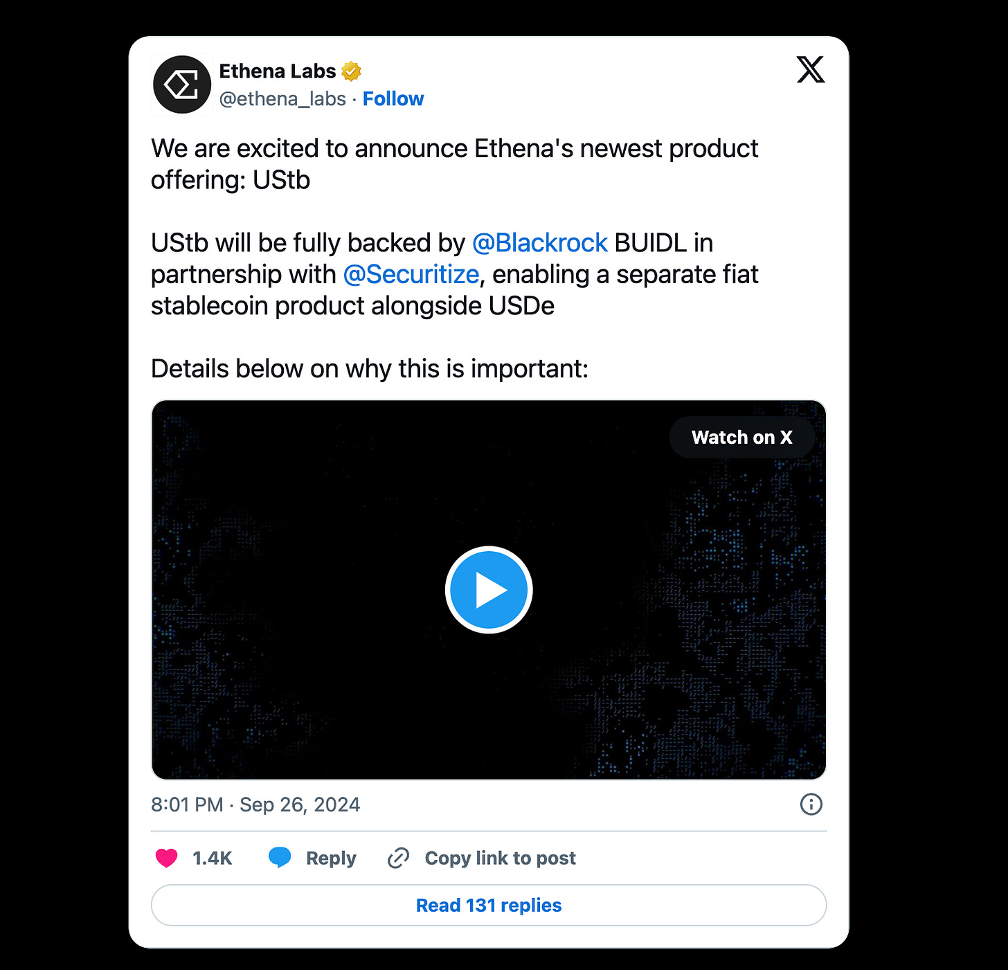 4、Ethena が Blackrock BUIDL ステーブルコイン UStb をリリース