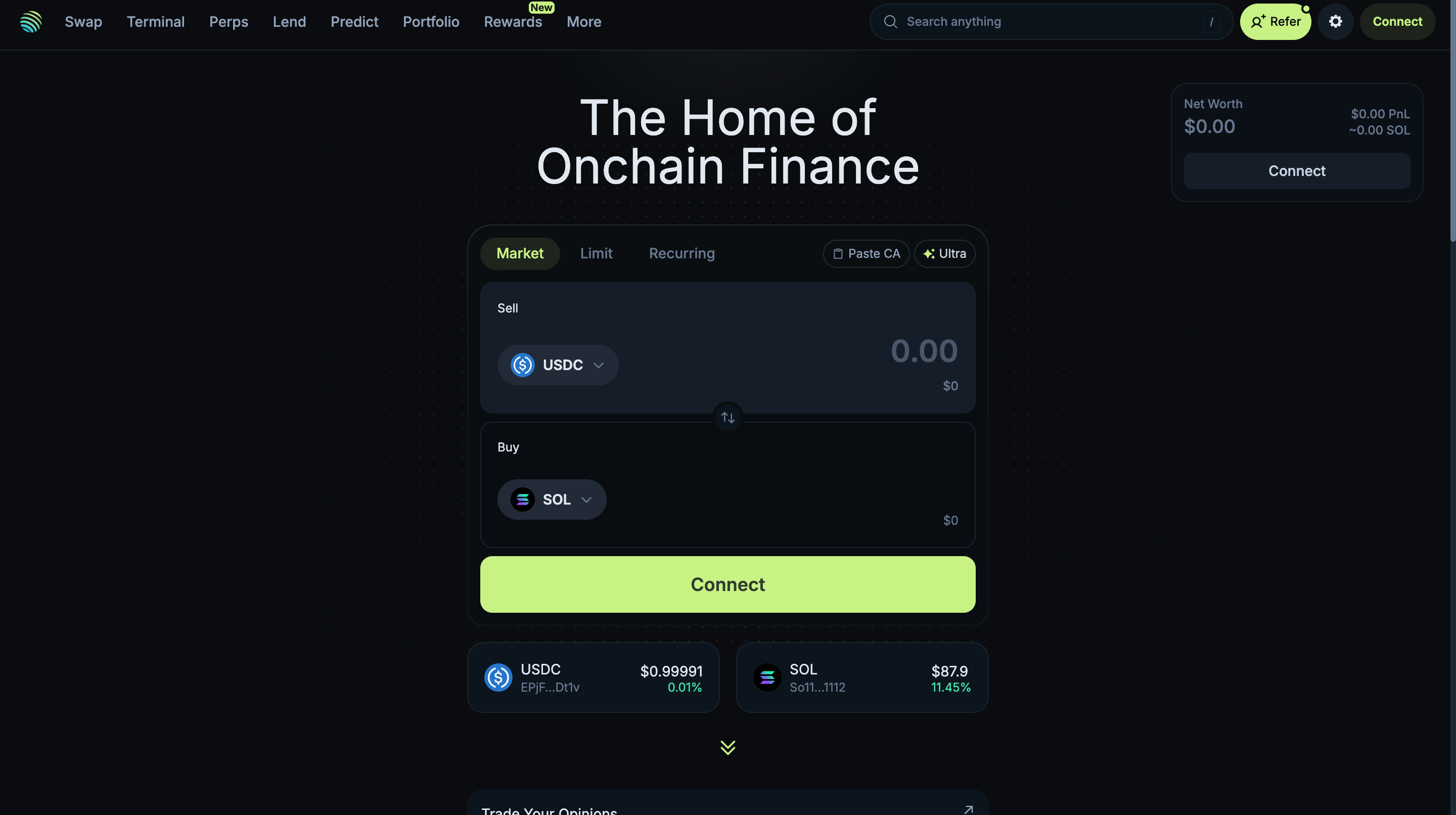 概要:Solana上のDEXアグリゲーター。流動性を集約することで、トレーダーに最適な価格と最小限のスリッページを提供することに重点を置いている。当初はスワップエンジンとして設計されましたが、ドルコスト平均法(DCA)、指値注文、無期限取引、そして様々なユーザーニーズに対応するローンチパッドなど、様々な製品を提供するようサービスを拡大。