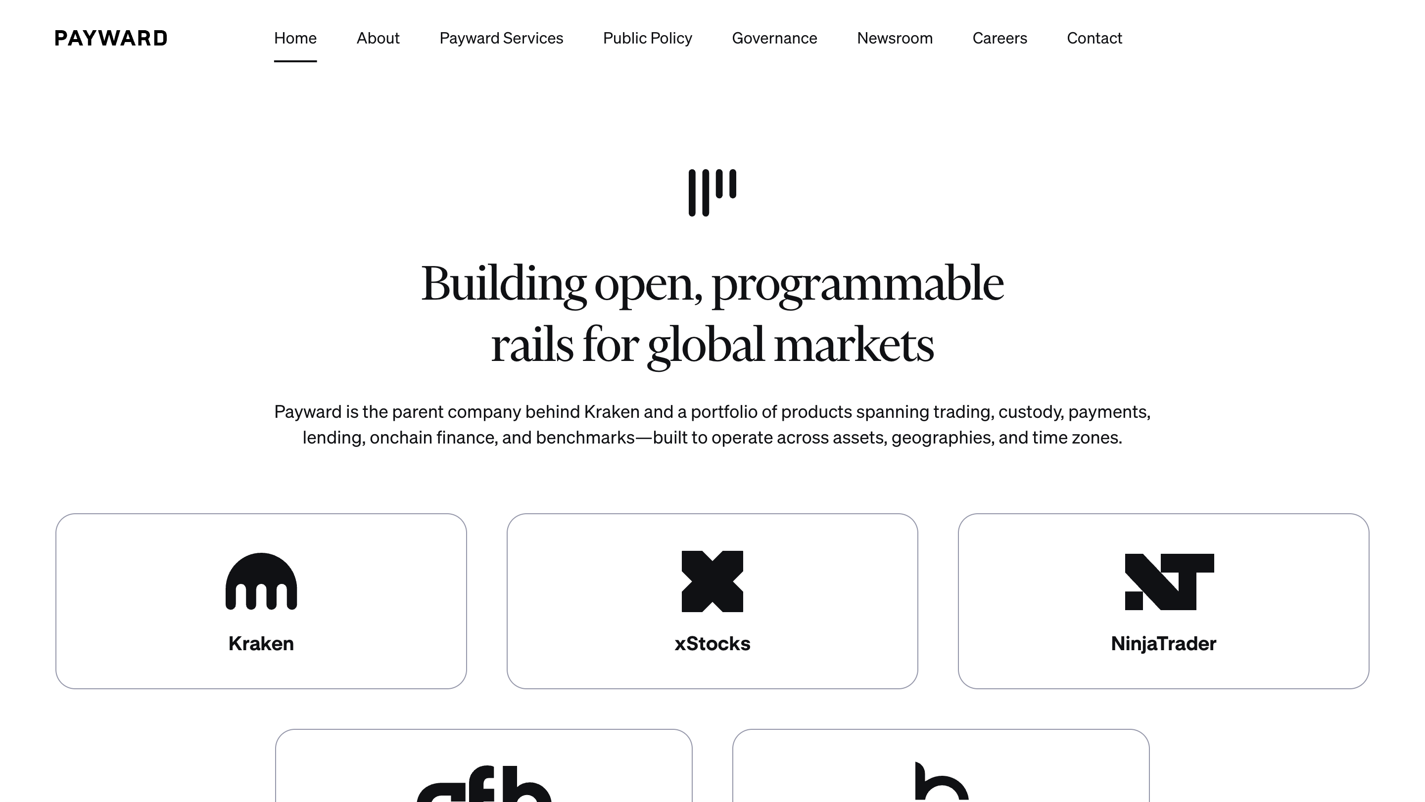 概要:Krakenおよび関連製品(暗号資産取引、カストディ、決済、融資、オンチェーン金融、ベンチマークなど)を提供する親会社。同社は、共有の相互運用可能なスタックを通じて暗号資産、トークン化資産、および従来の金融を結びつける、オープンでプログラム可能なグローバル市場のインフラストラクチャとしての役割を担っている。