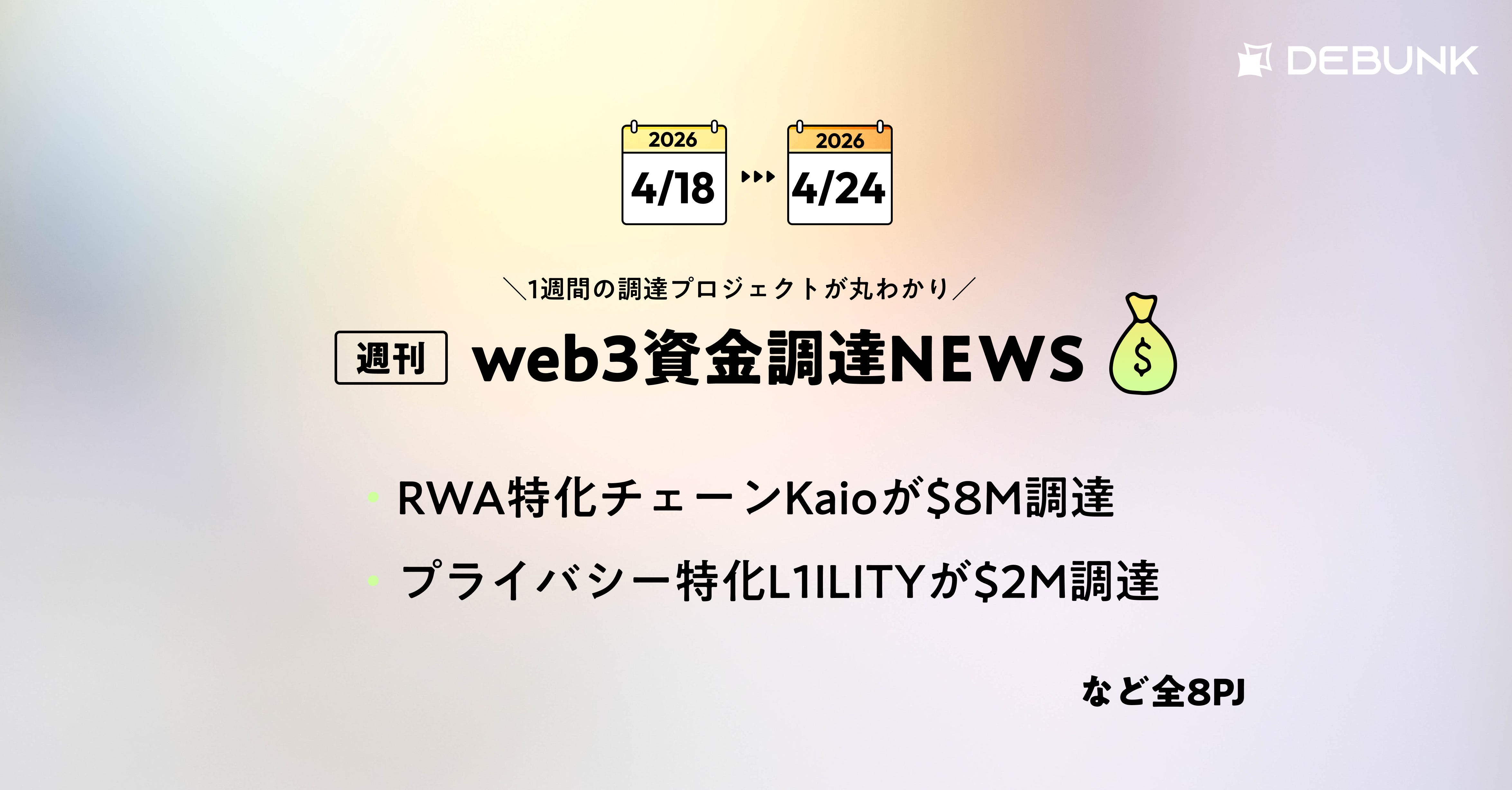 RWA専用に構築された主権型AppChainプロトコルKaioが$8M調達、プライバシーを最優先に設計されたL1ブロックチェーンILITYが$2M調達など、全8PJ【資金調達PJまとめ】