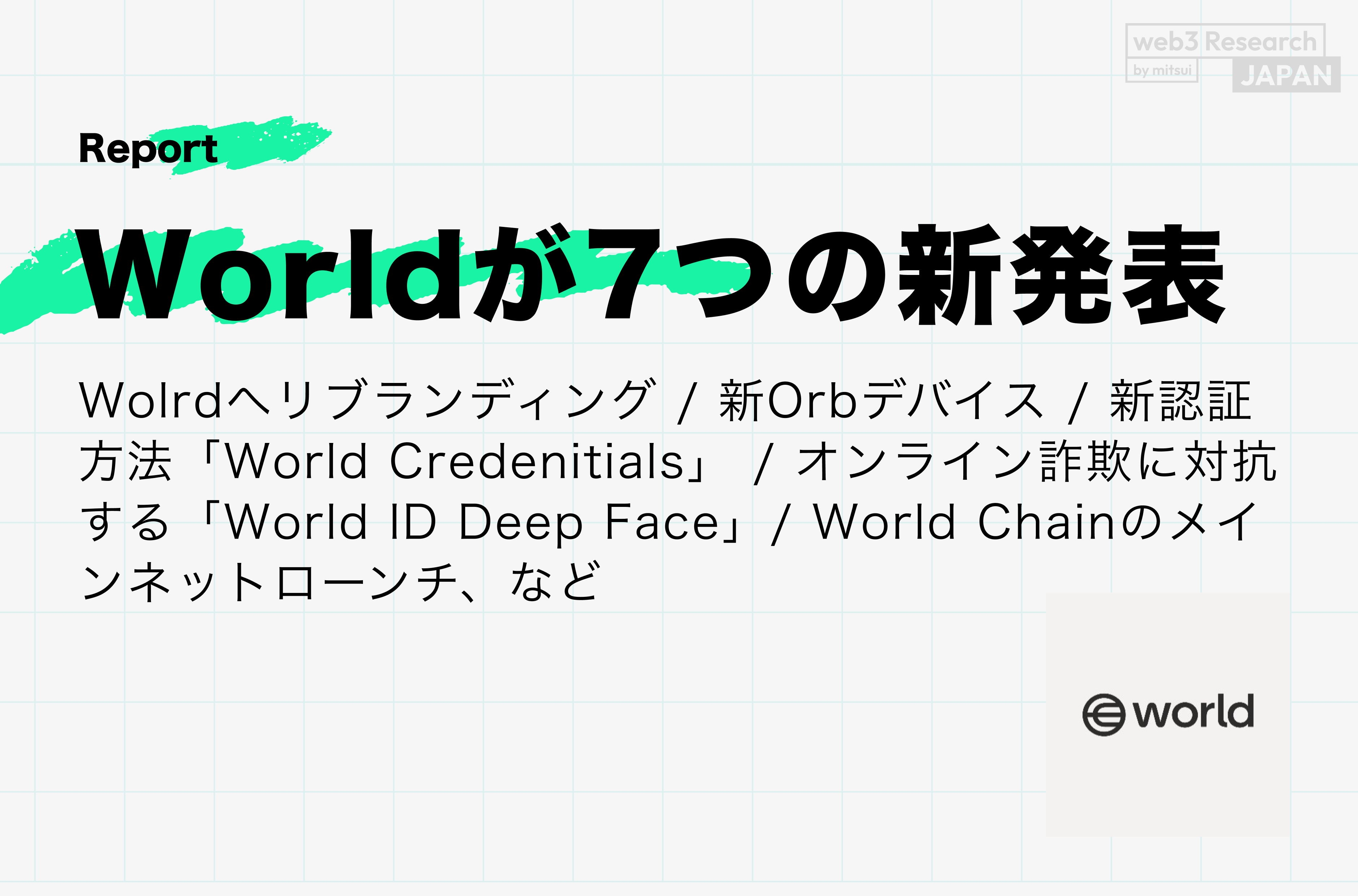 Worldが7つの新発表 / Wolrdへリブランディング / 新Orbデバイス / 新認証方法「World Credenitials」 / オンライン詐欺に対抗する「World ID Deep Face」/ World Chainのメインネットローンチ、など
