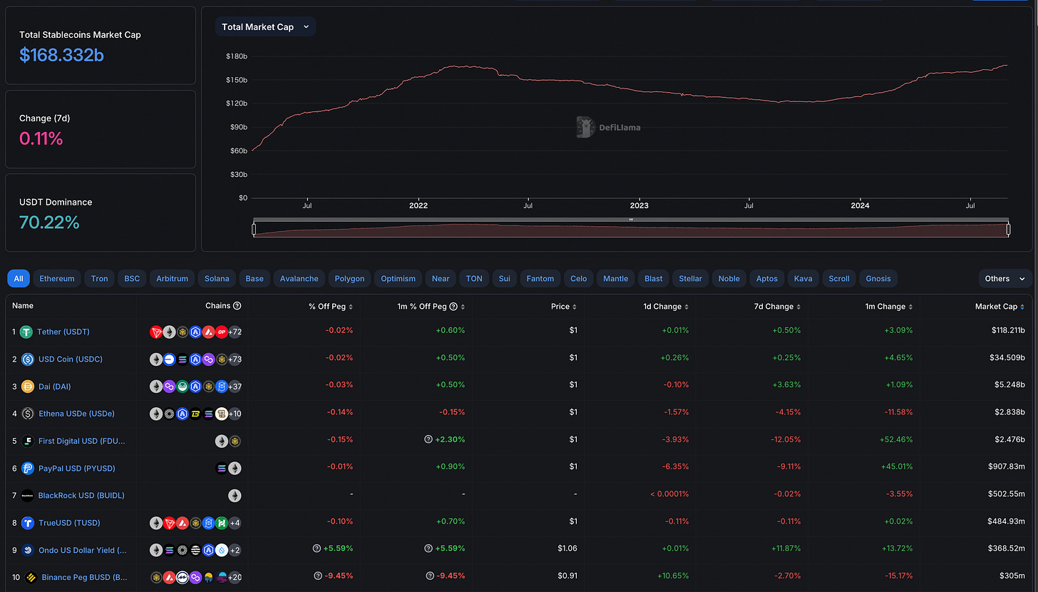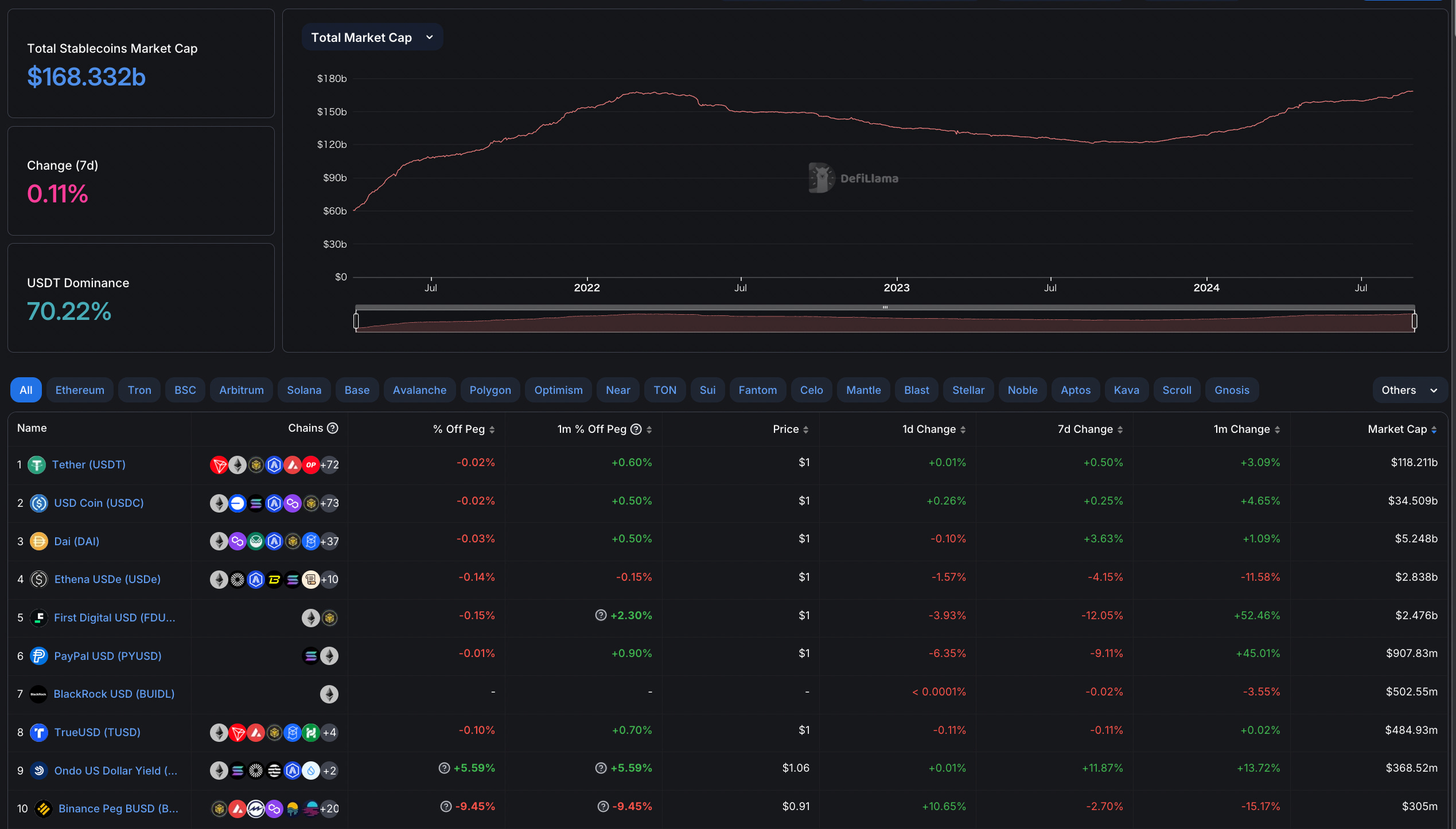ステーブルコインの時価総額は過去1週間で0.8%拡大し、1681億ドルを超え、2022年3月の過去最高値である約1670億ドルを上回った