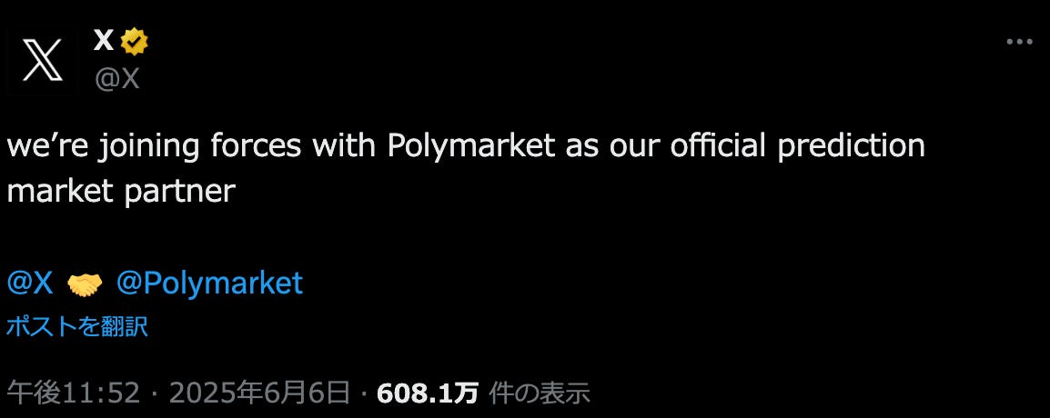 🤖マスク氏のX、予測プラットフォームPolymarketと提携