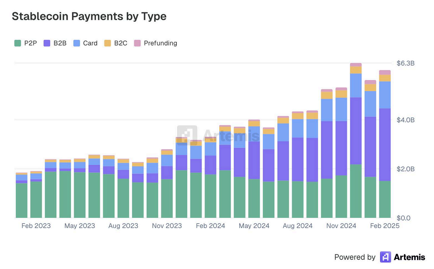 Artemisによる新たな調査によると、企業間決済はステーブルコインの流入の中で最も急速に成長している分野となっている