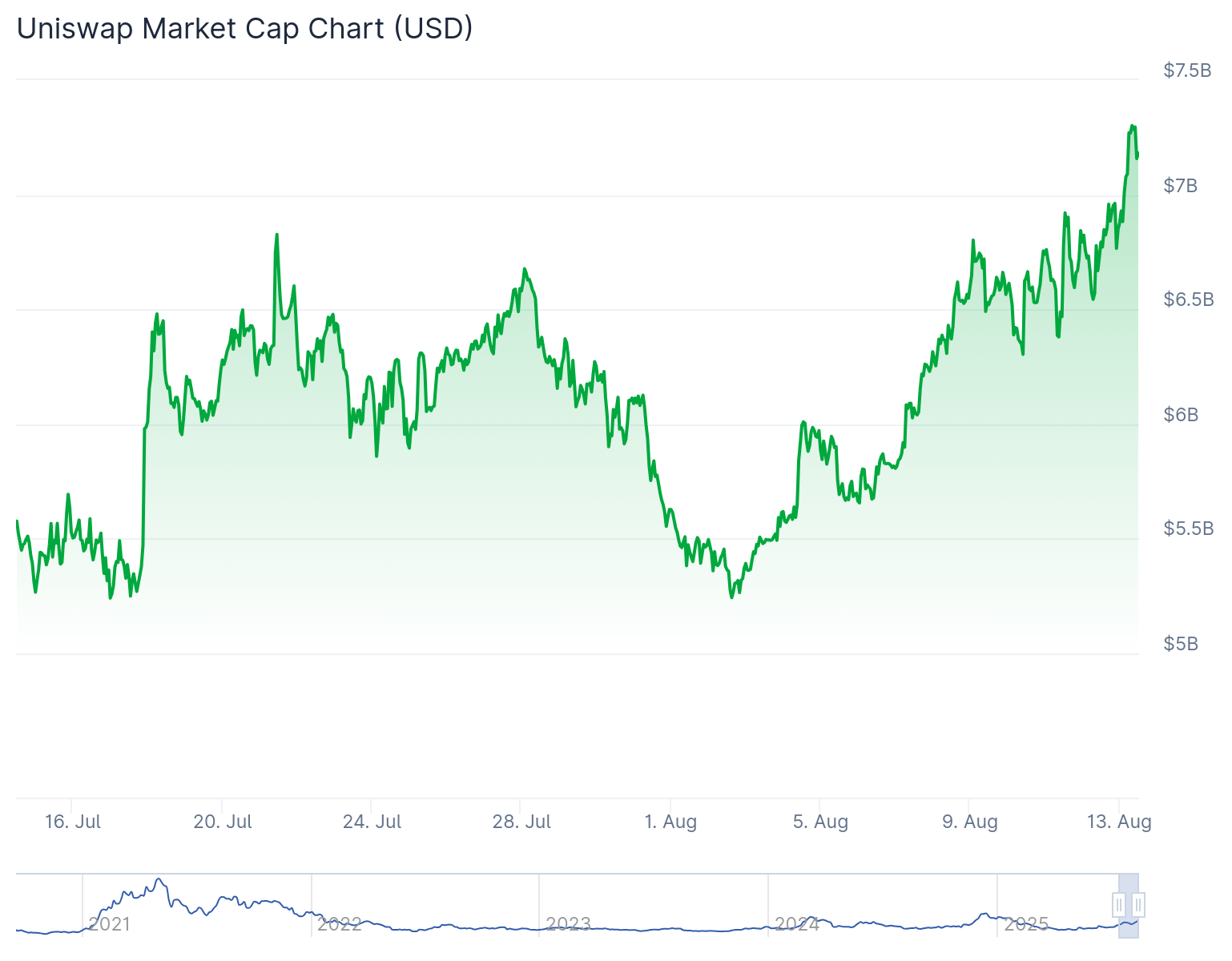UNI価格は直近1週間で25%上昇、DAOの再構築に伴い市場の注目を集める。